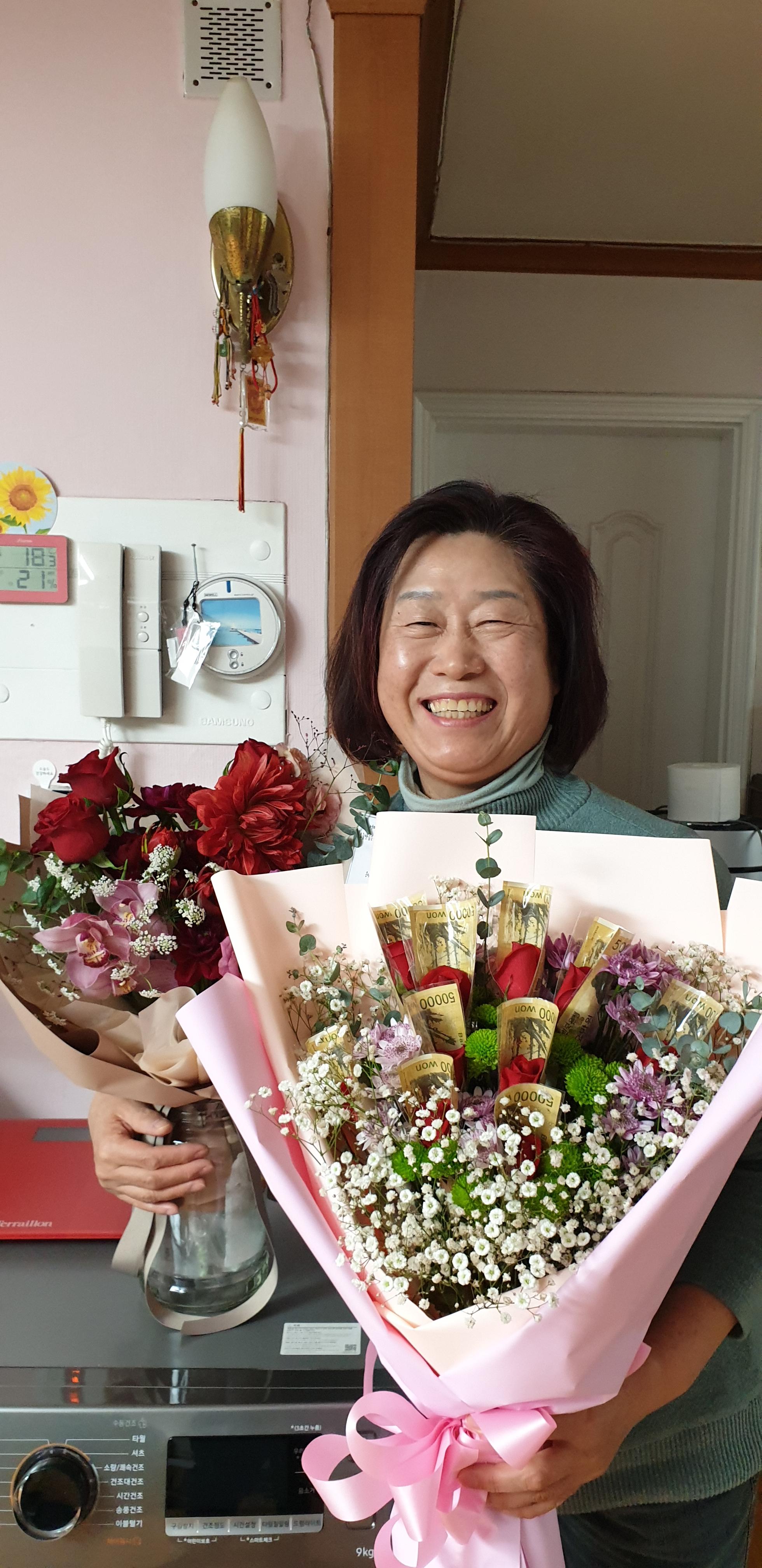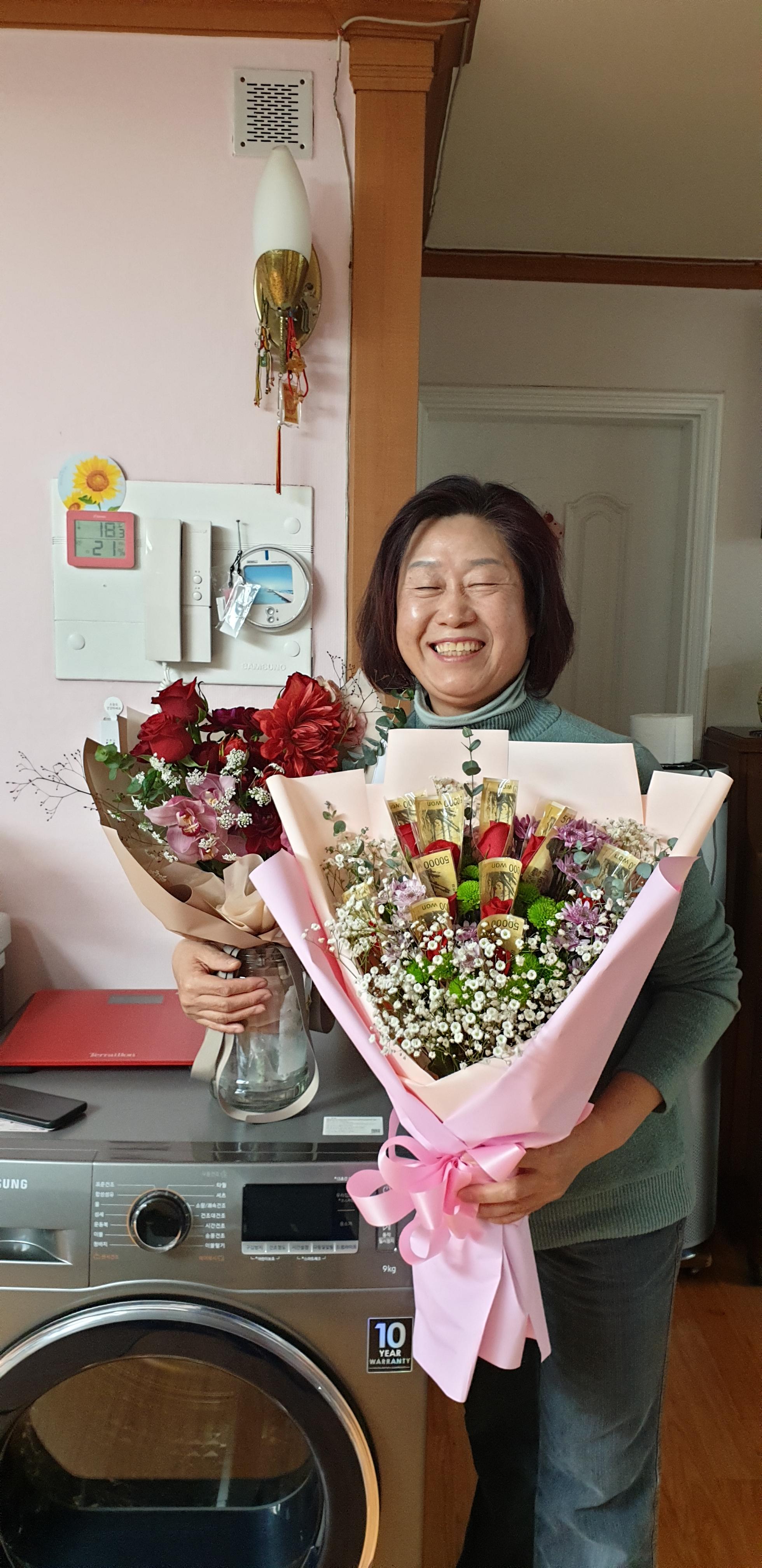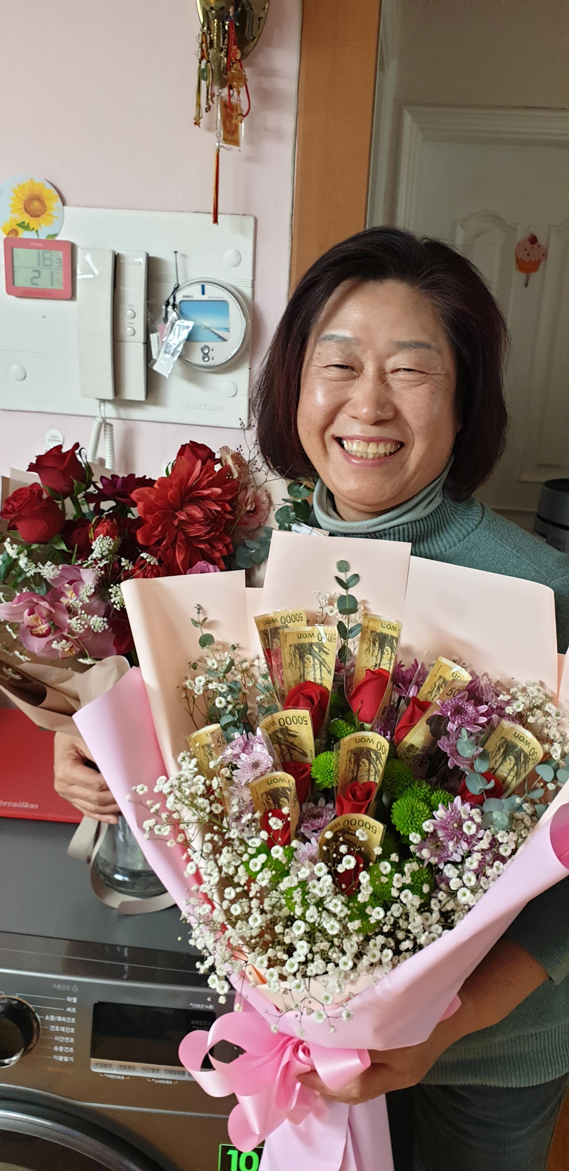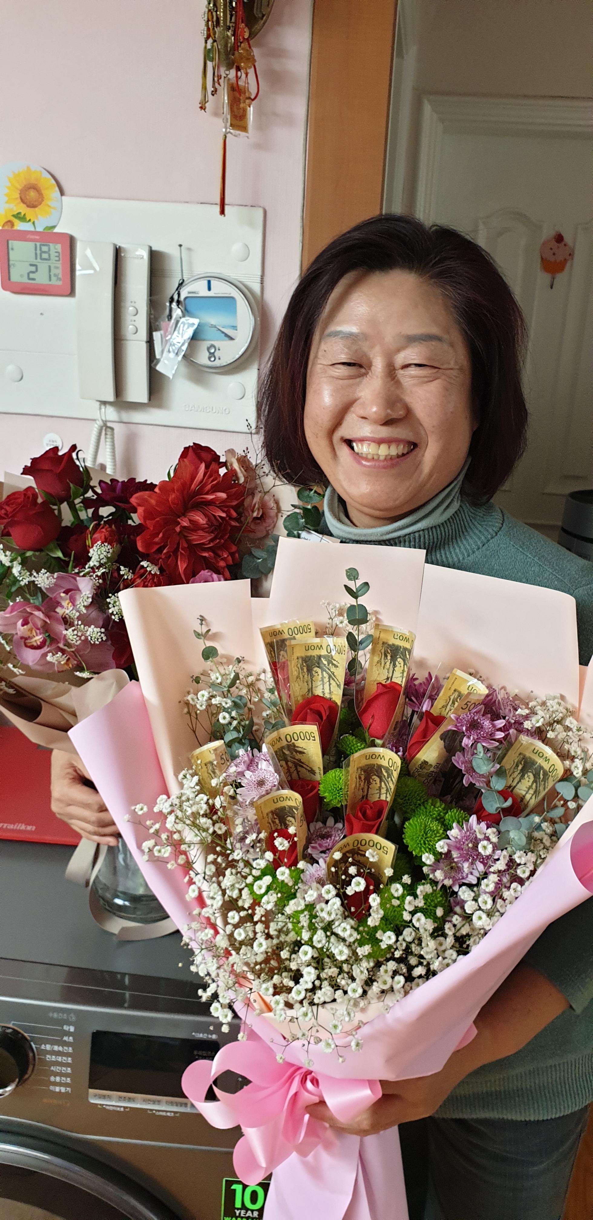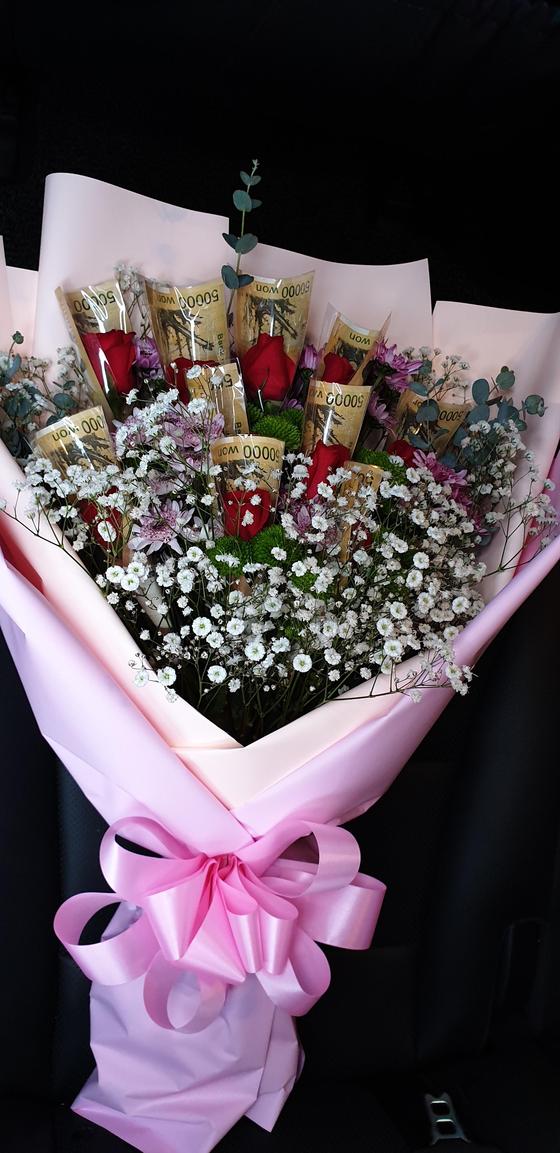 낮에 주문한 돈꽃다발 선물함