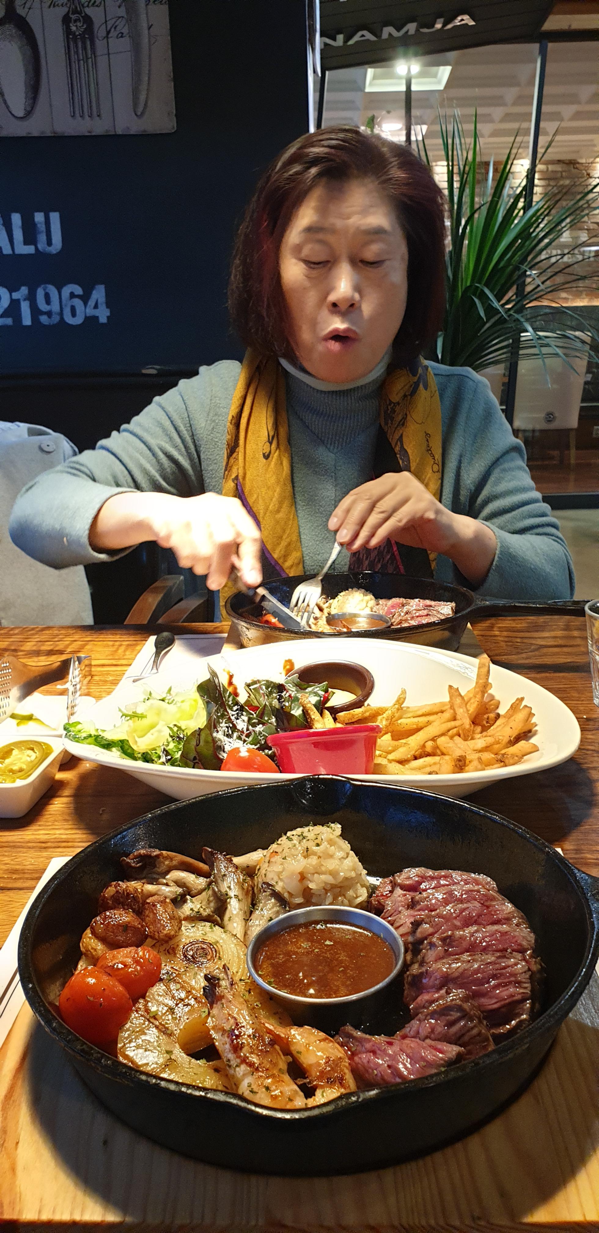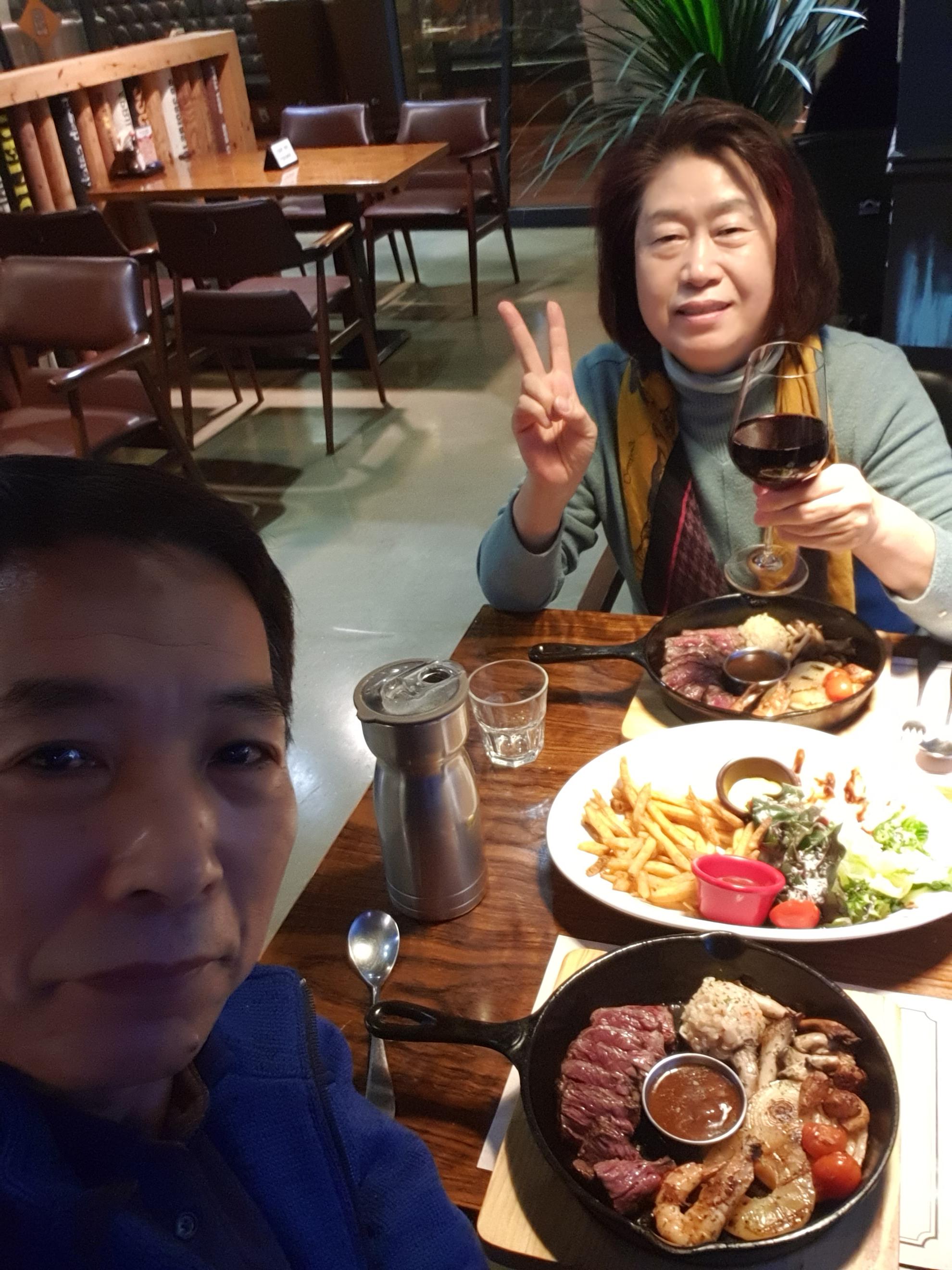 퇴근하고 요남자 스테이크 먹을려고 아내 나오라고 해서 저녁 먹고 저수지 한바퀴 돌아서 집에왔습니다