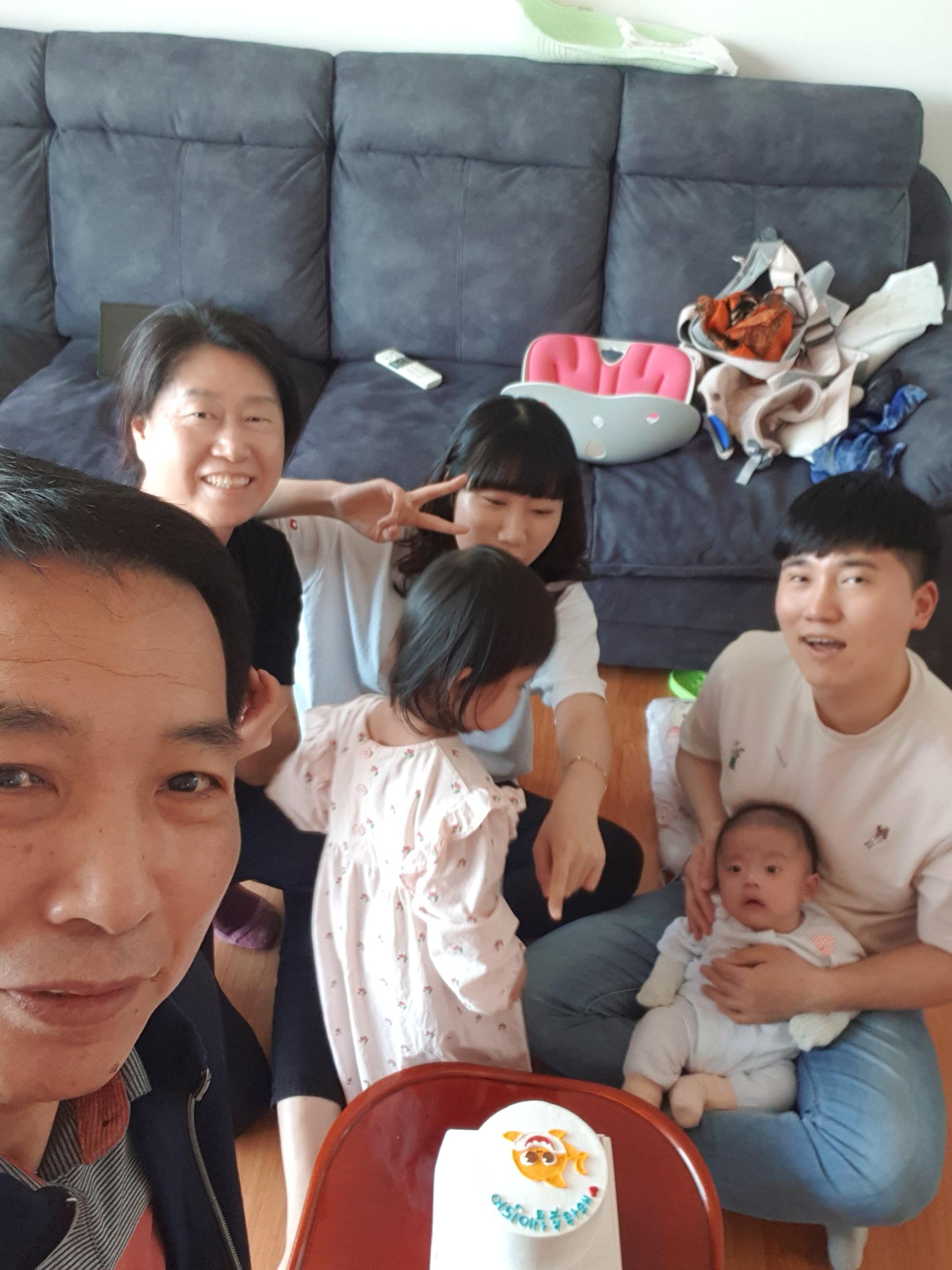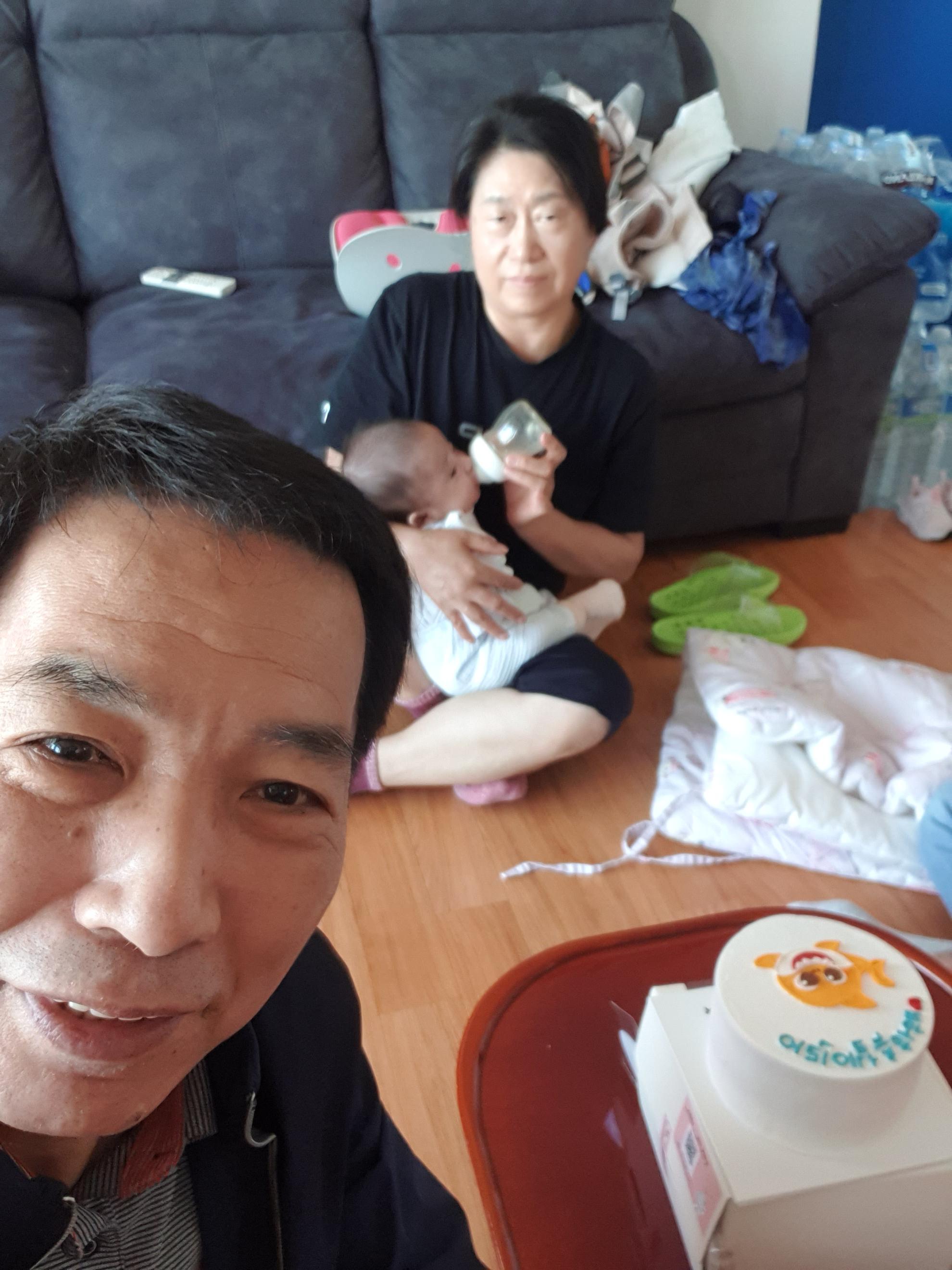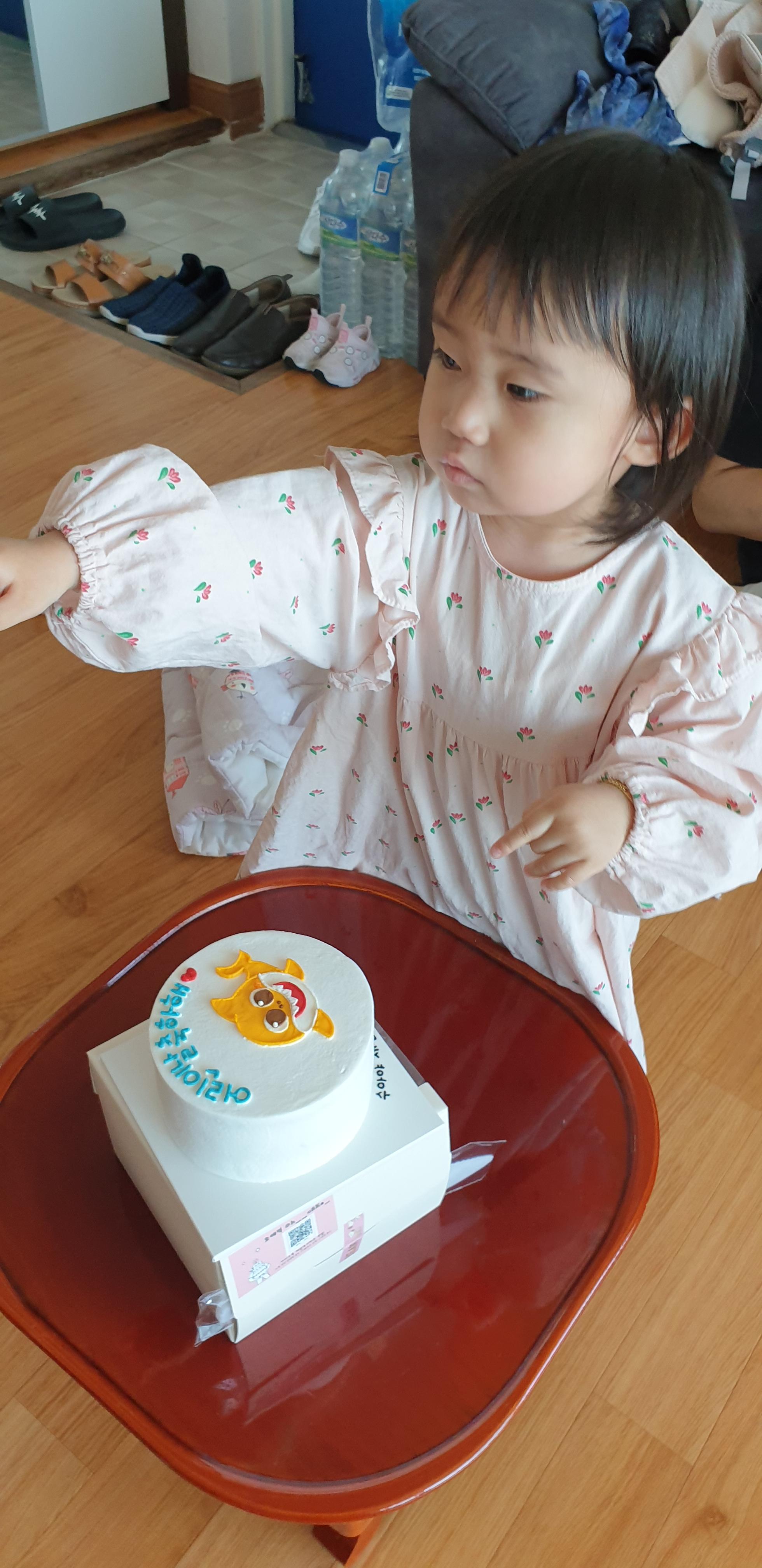애엄마가 케익주문해서 찿아오고 사위가 야간 끝나고 와서 케잌 같이 먹 고 큰애만 데리고 근처 공원에가서 비눗방율놀이 한다고 나갔네요
