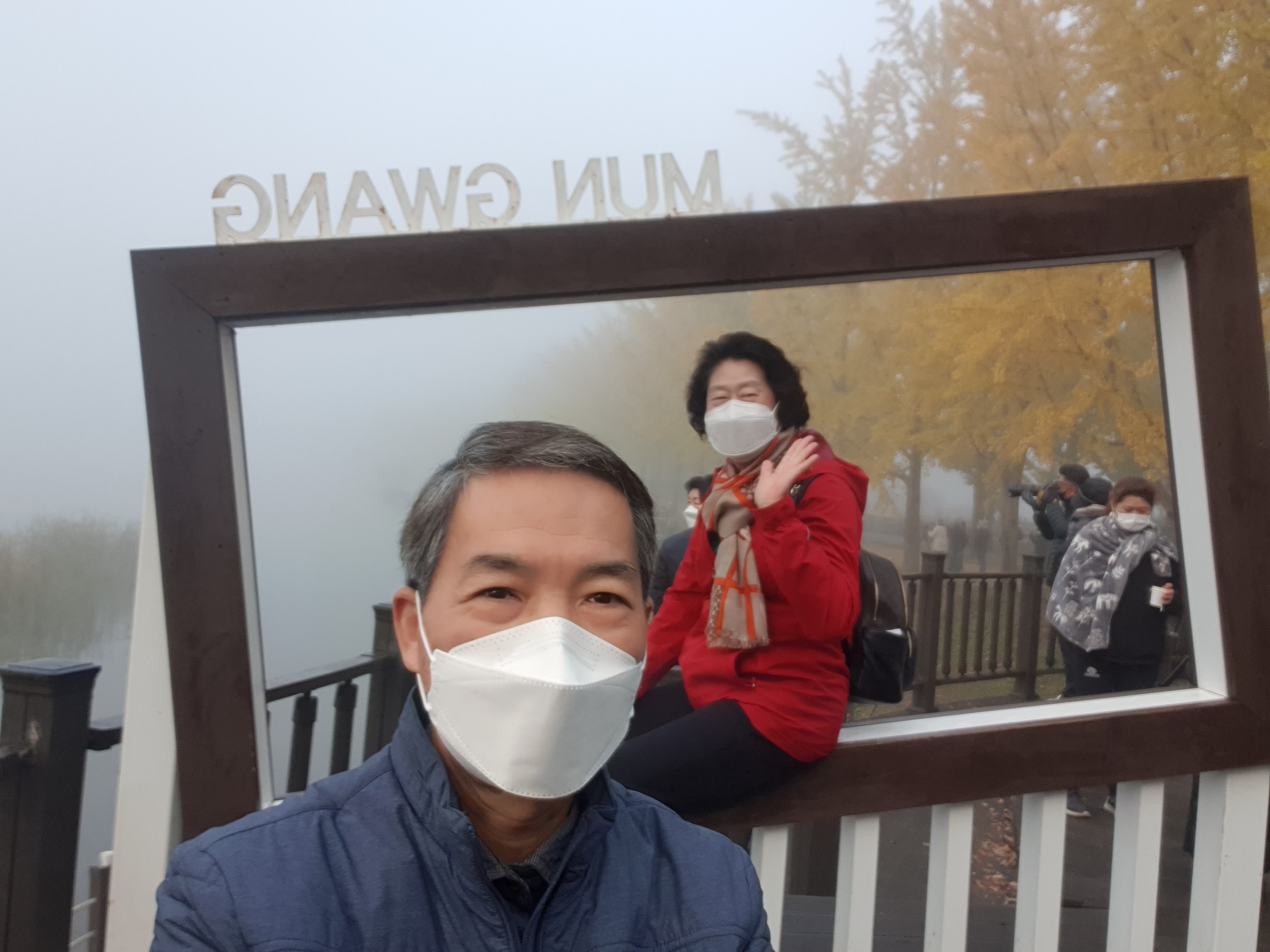 물안개 피어나는 저수지 은행나무가 정말 환상적 이였습니다