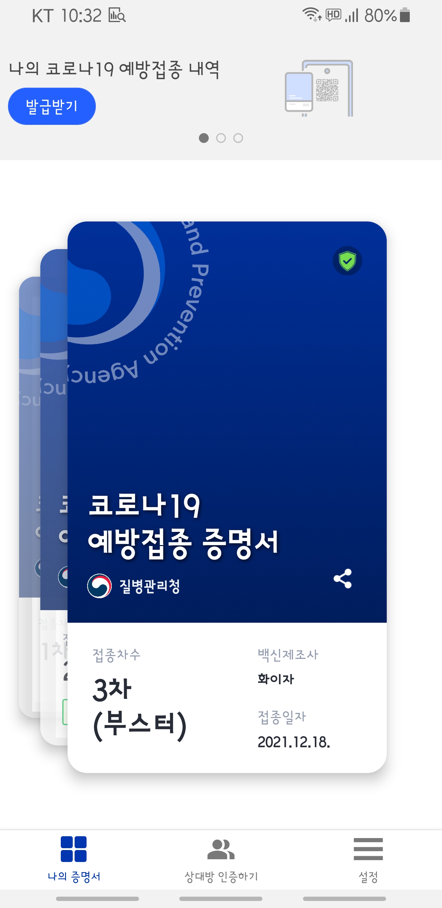 [질병관리청] 3차(부스터)접종 증명 안내