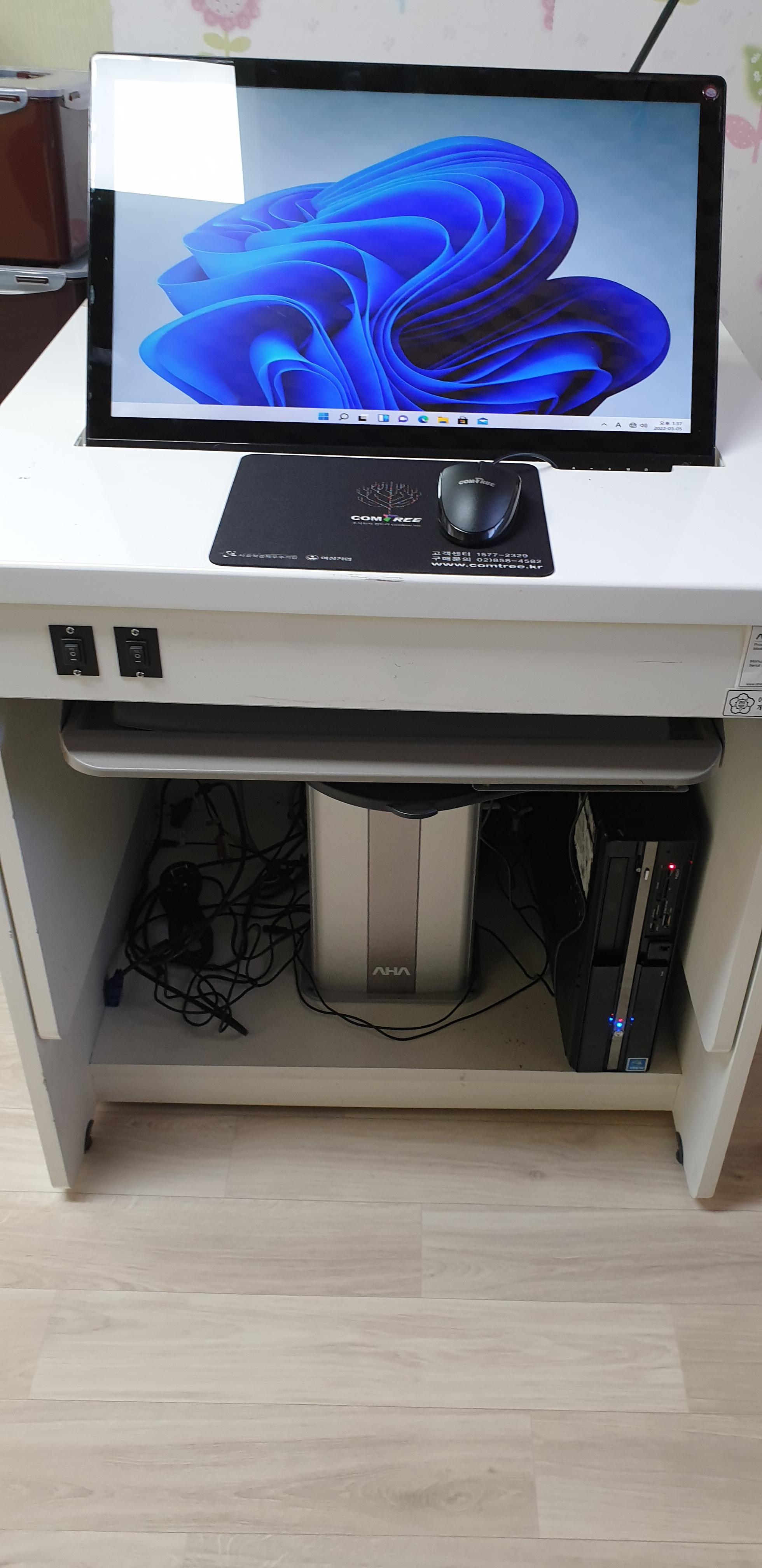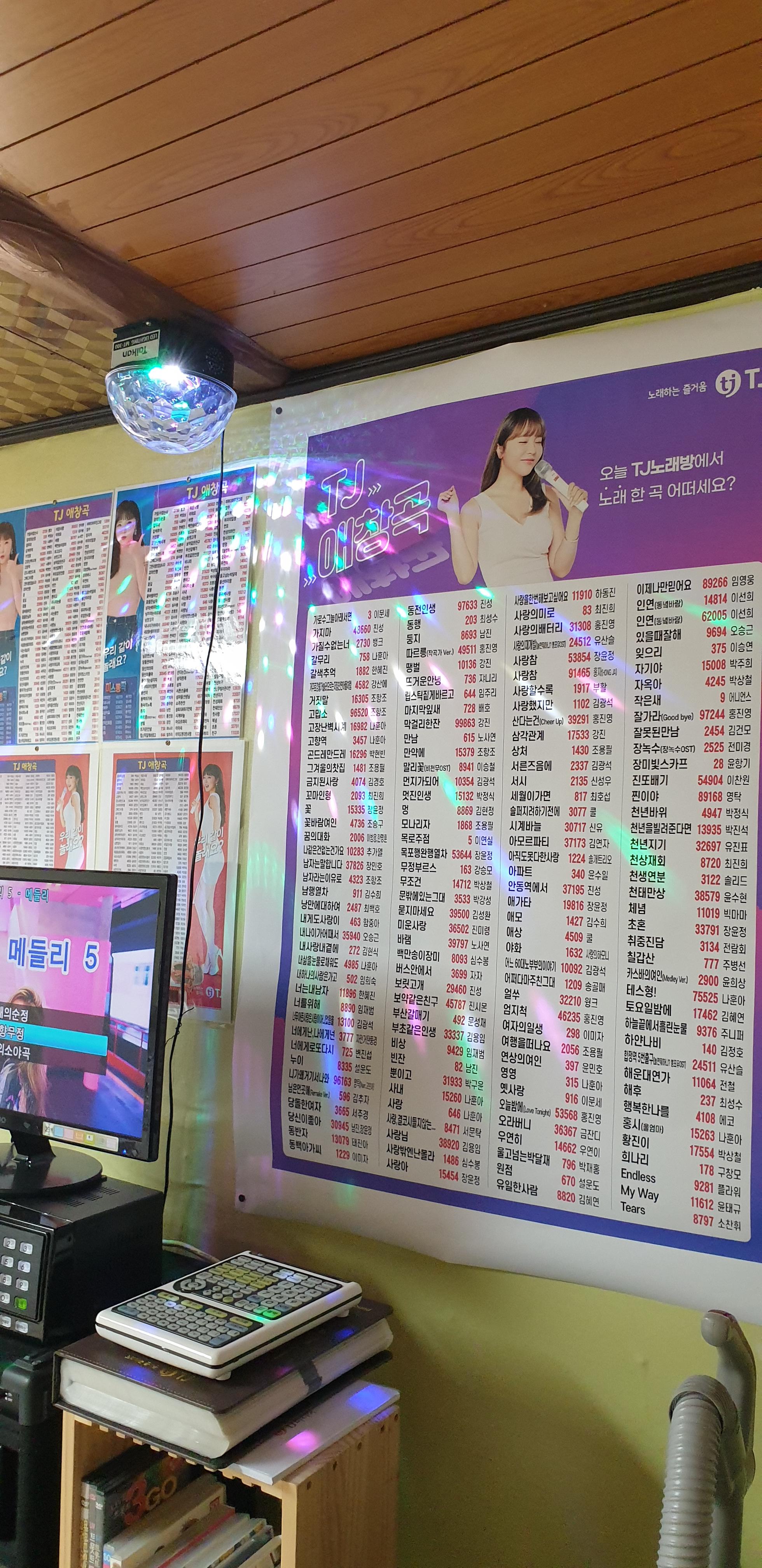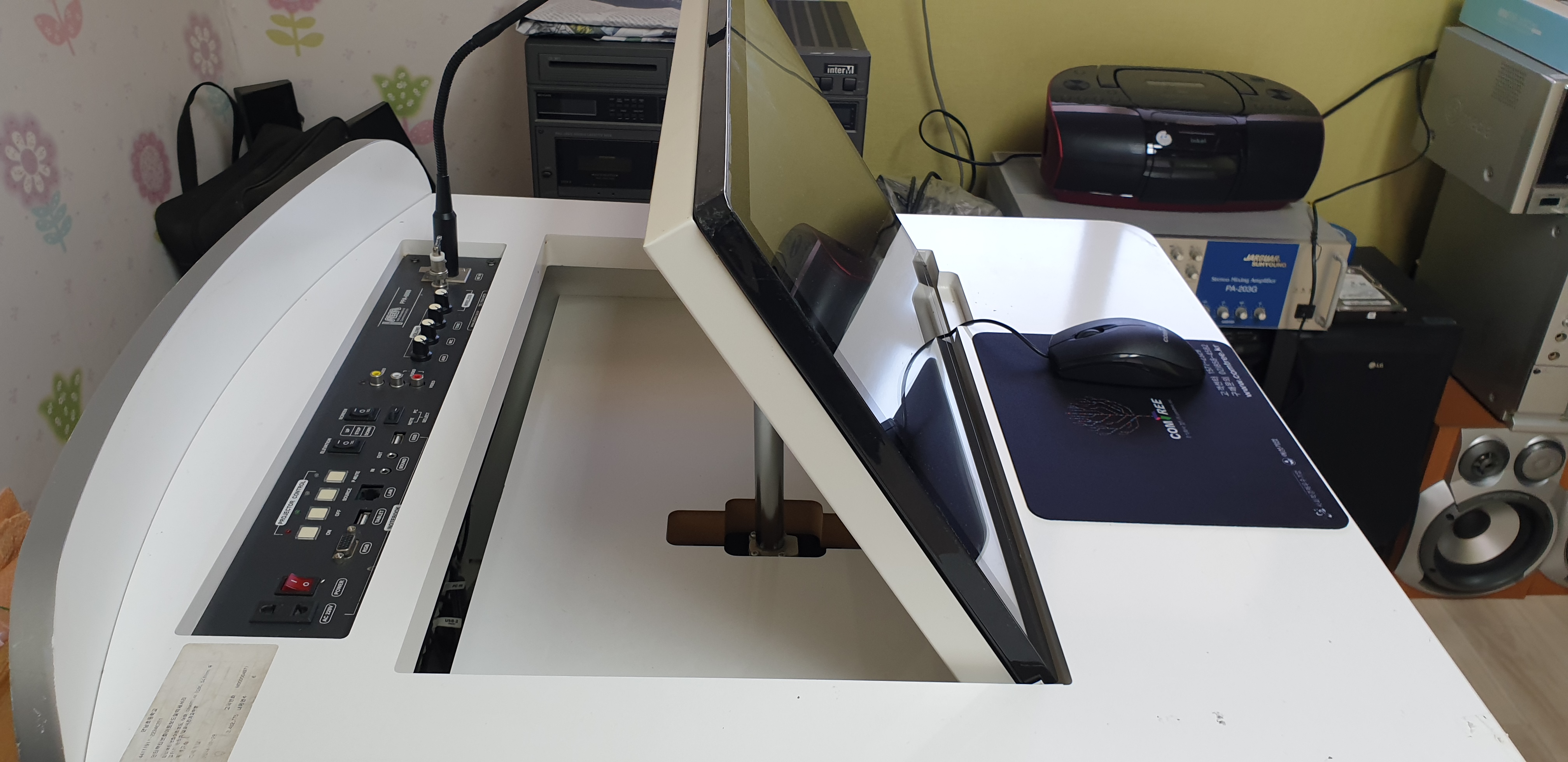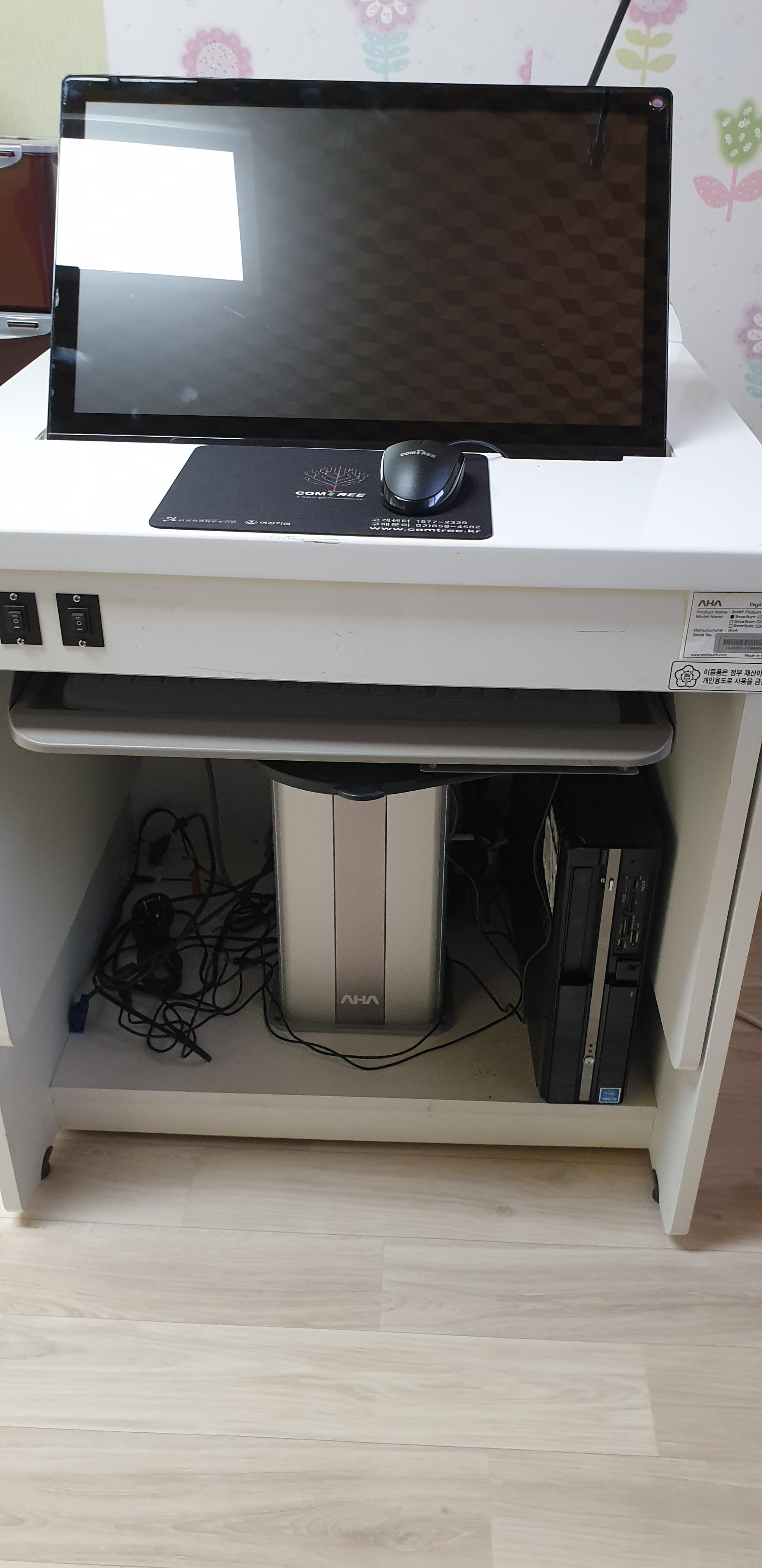 전자교탁 갖다놓고 잘 돌아가나 시험 가동 해보고 노래방기기