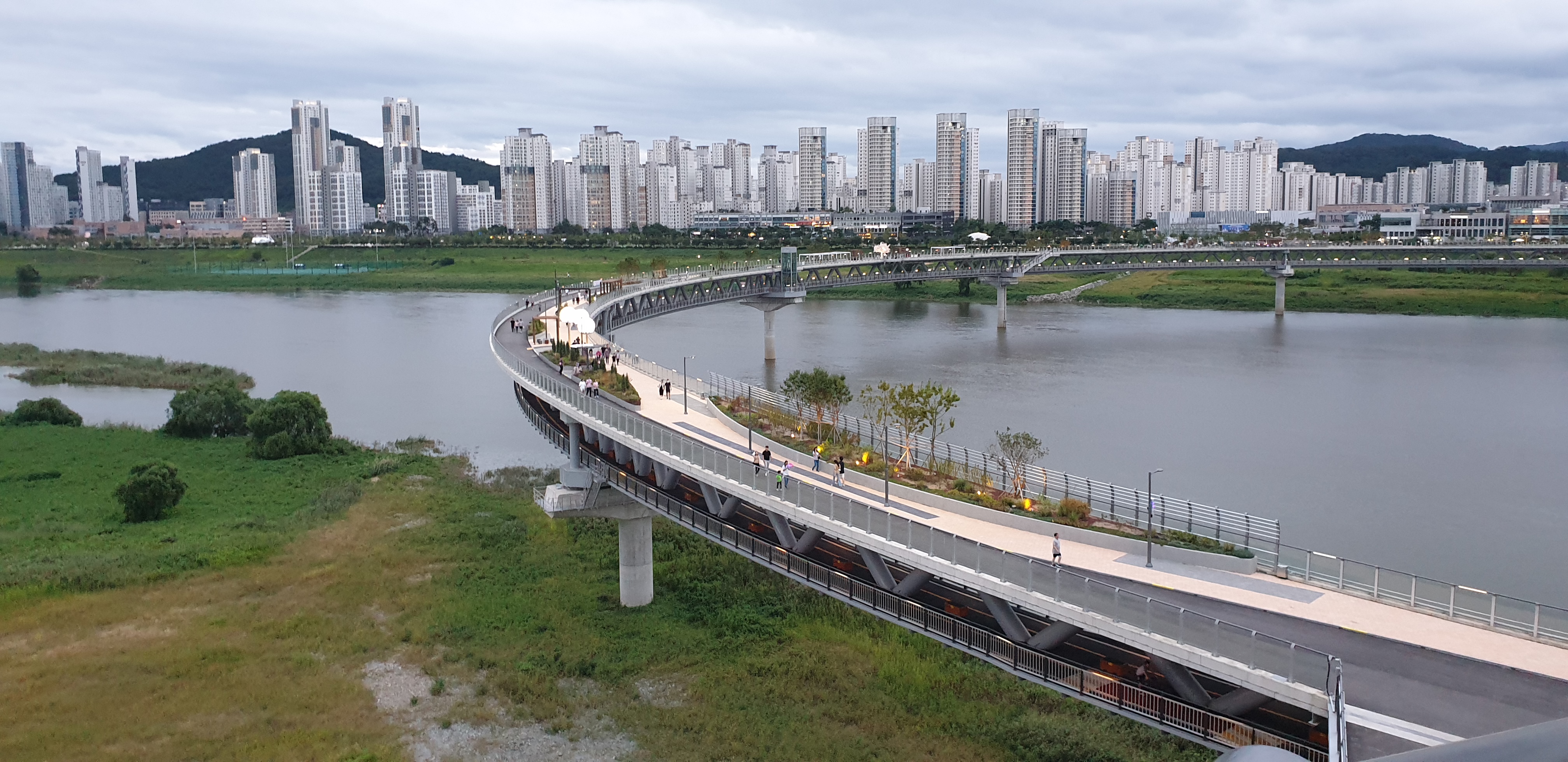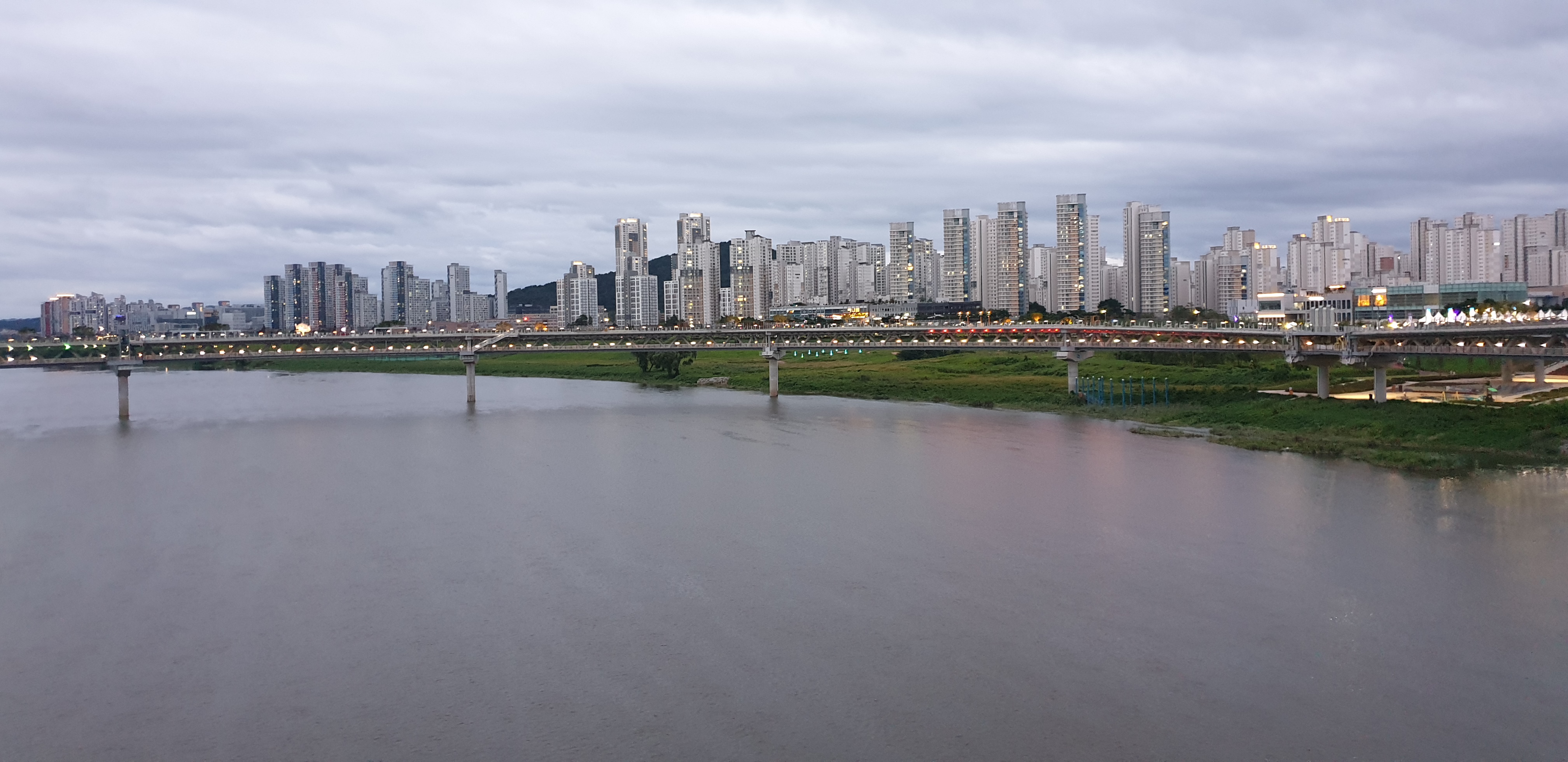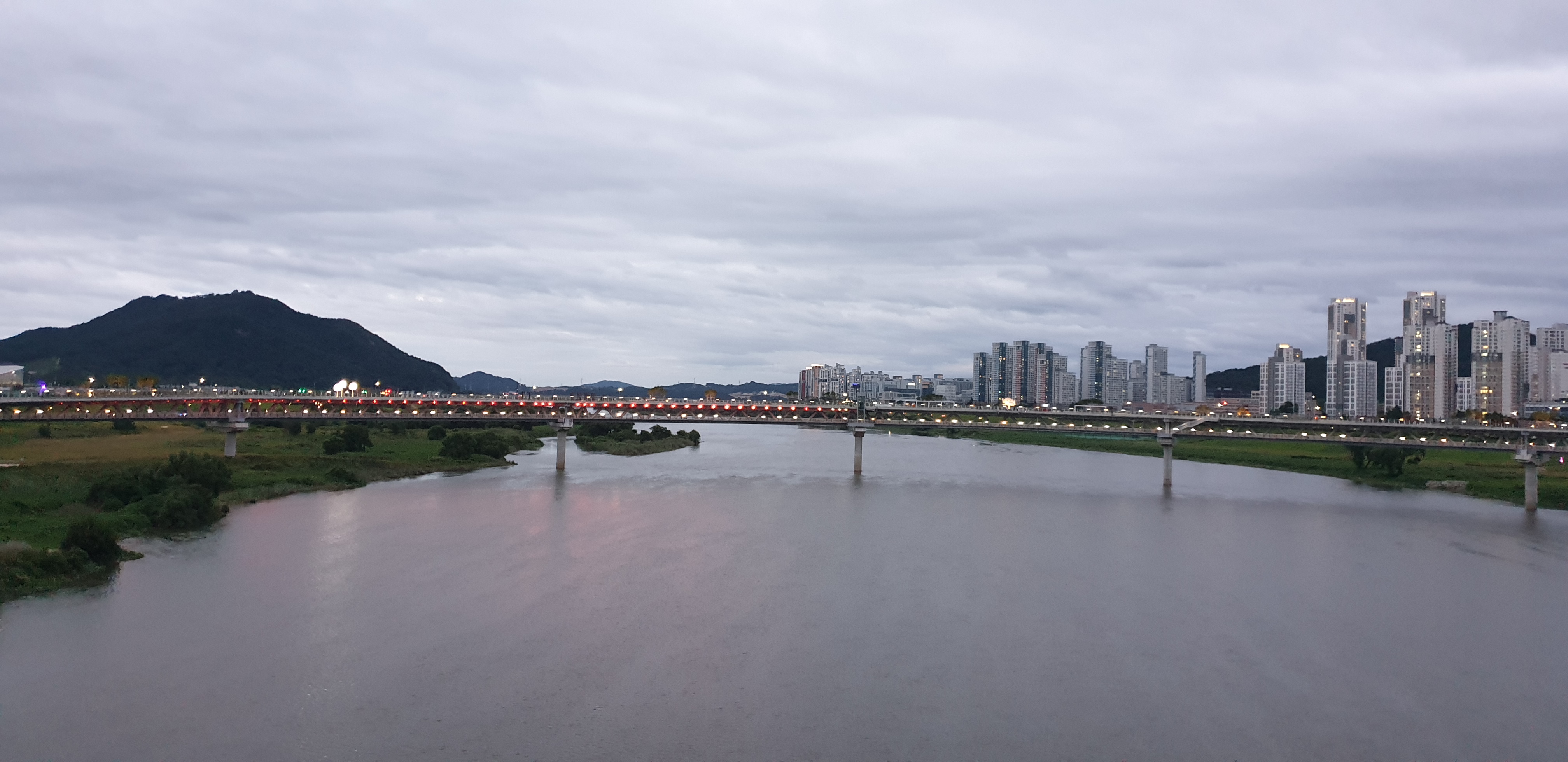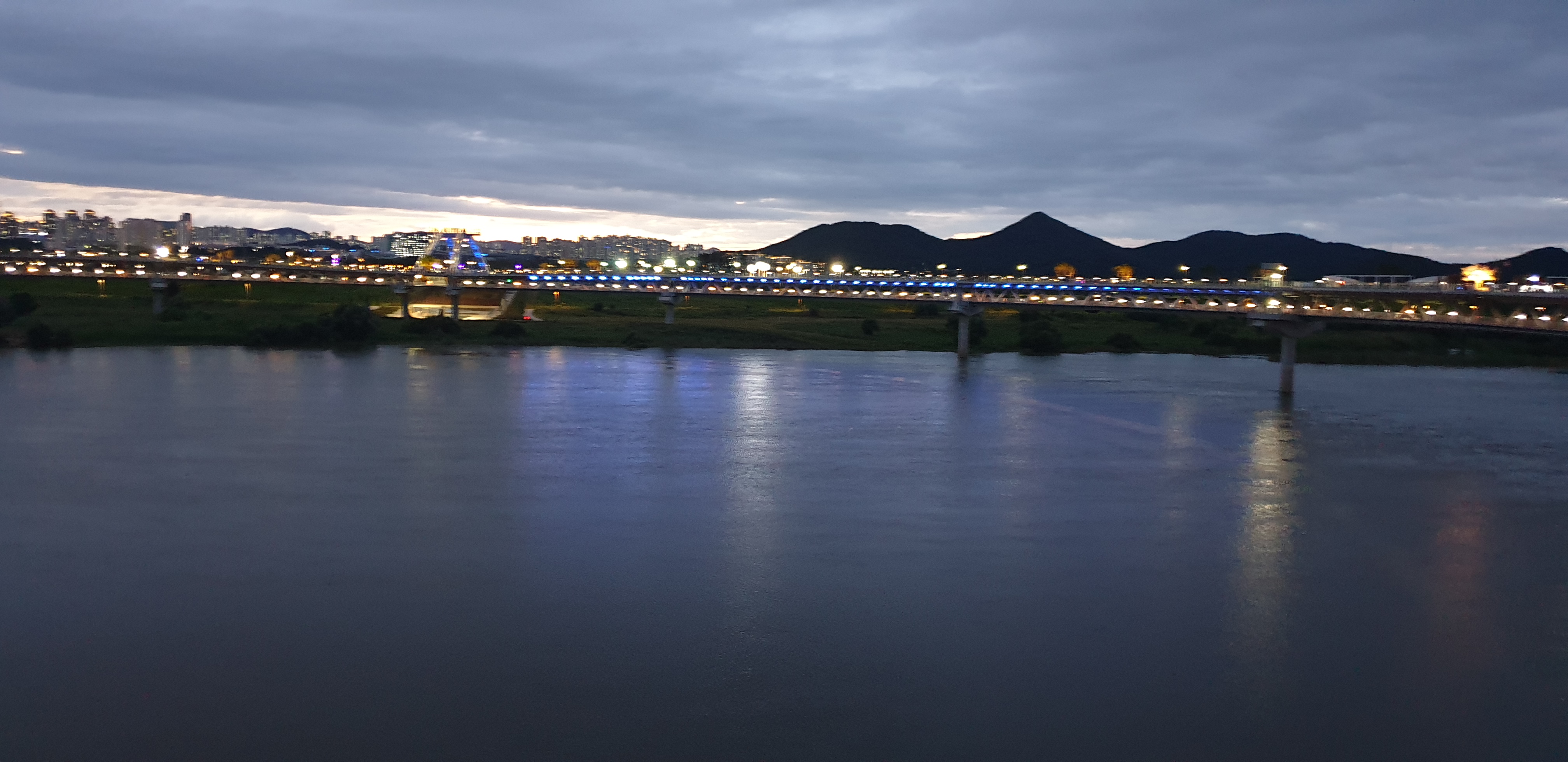 저녁은 스테이크 먹고 금강보행교 야간 산책 경치가 정말 멋지죠