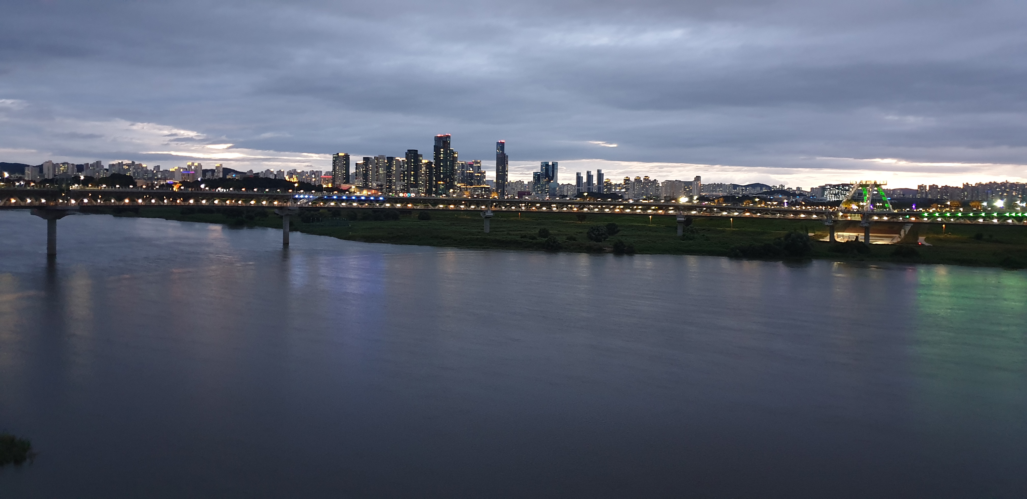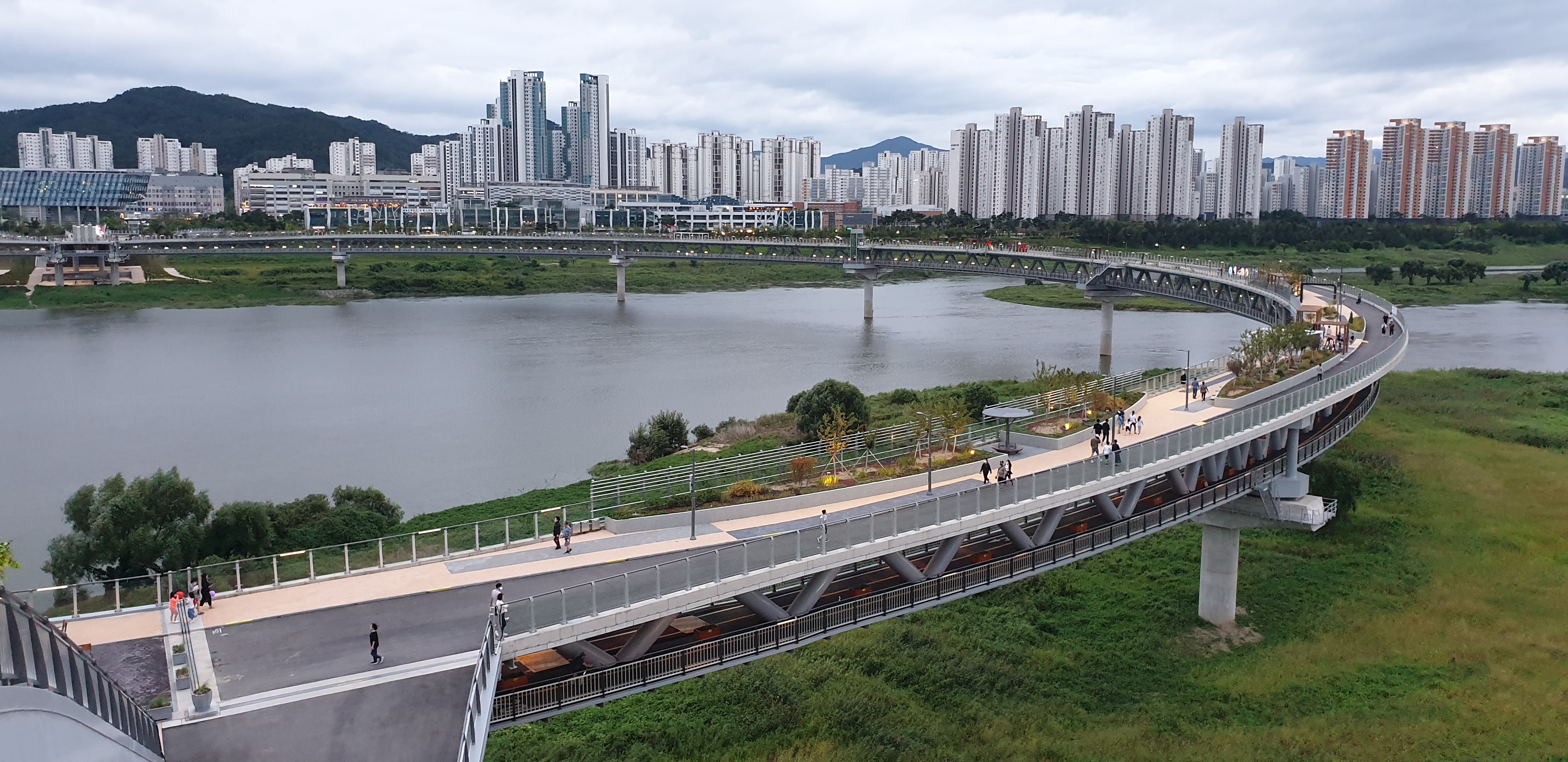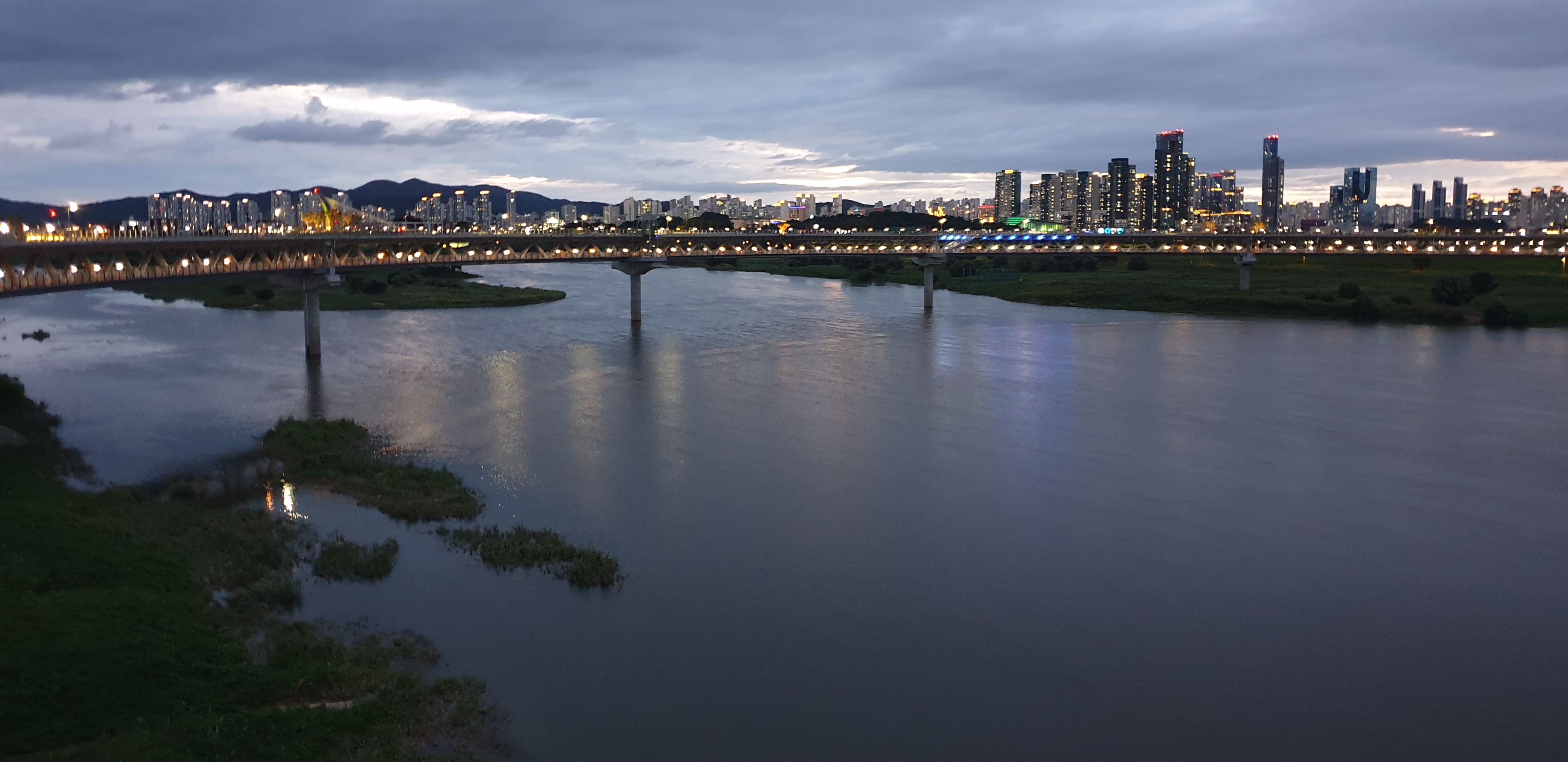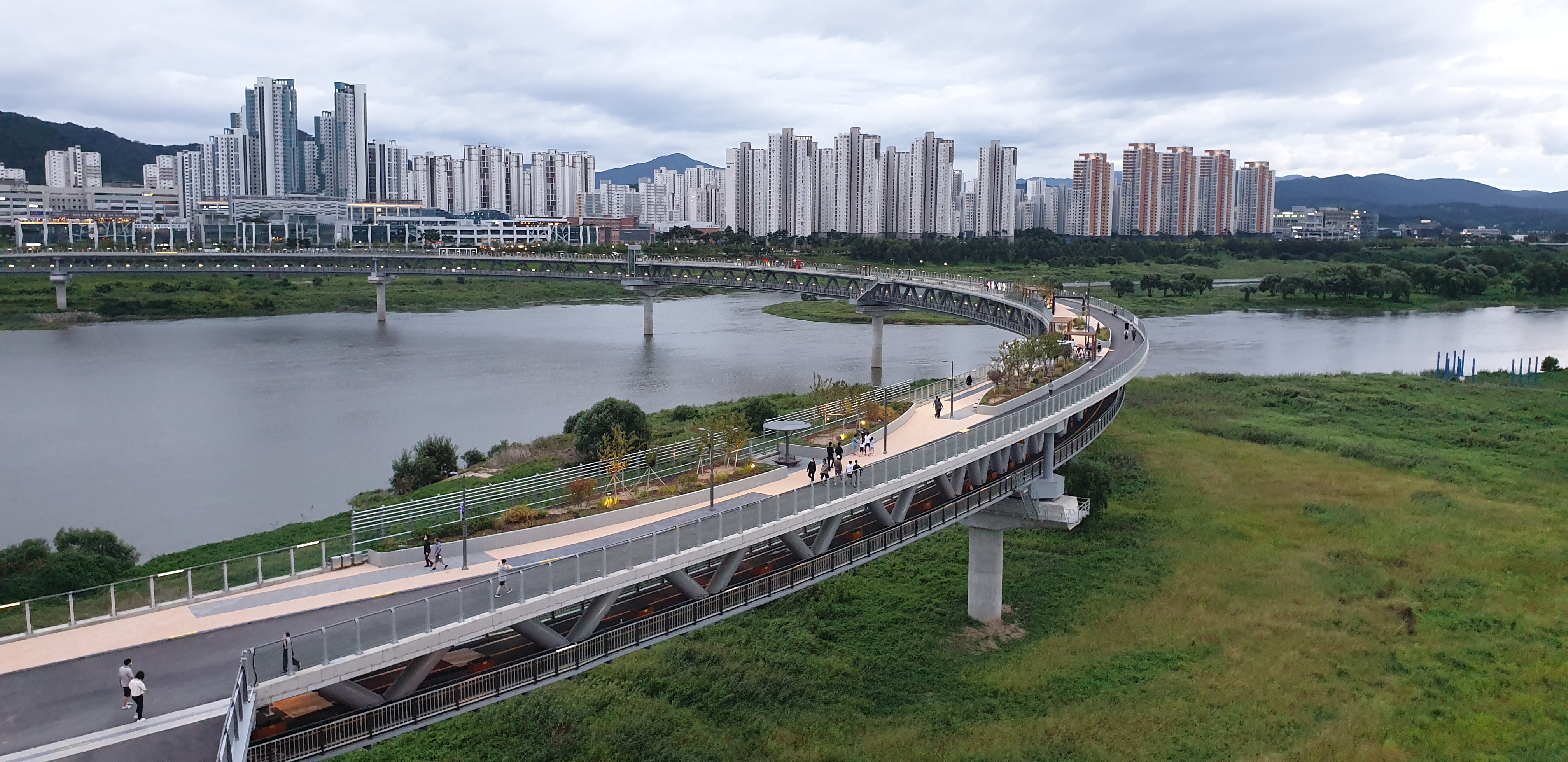 저녁은 스테이크 먹고 금강보행교 야간 산책 경치가 정말 멋지죠
