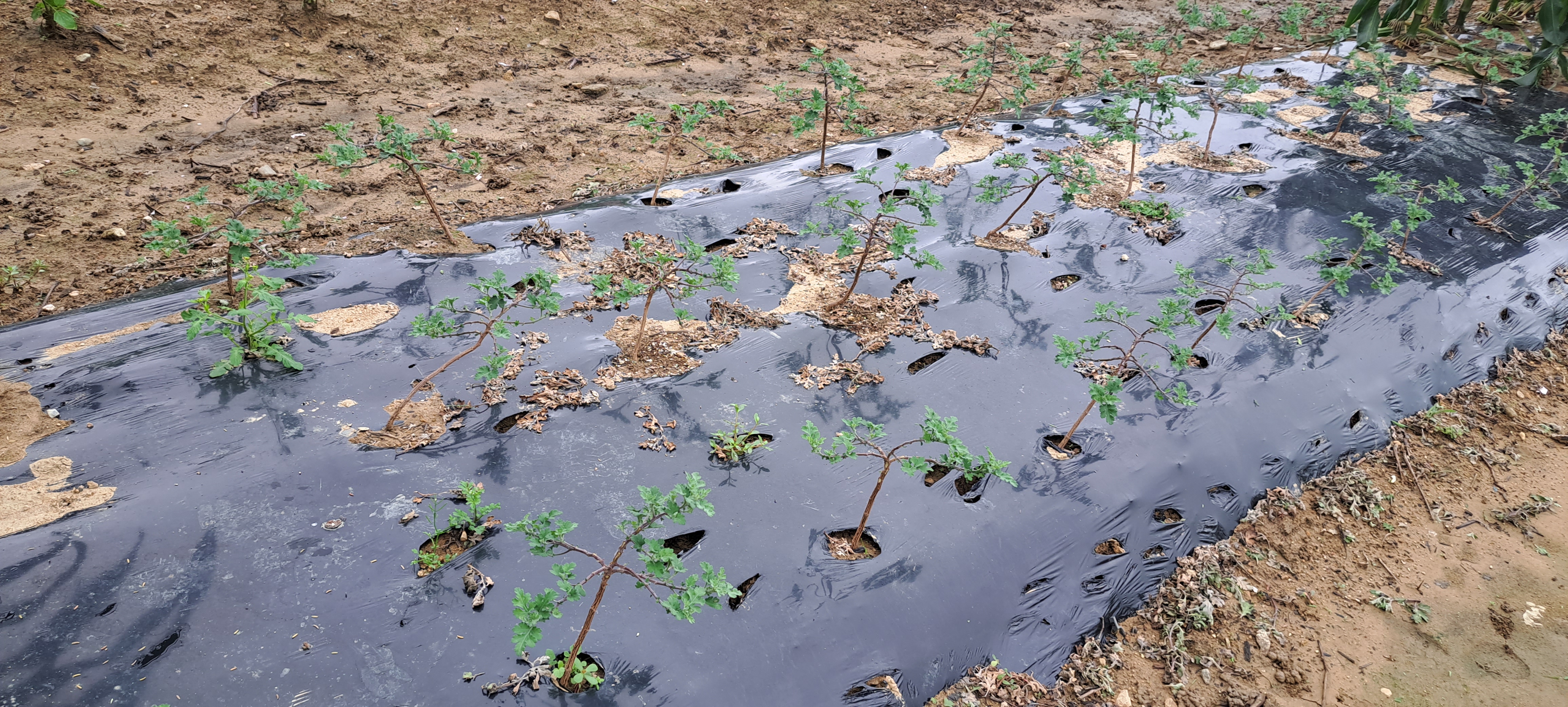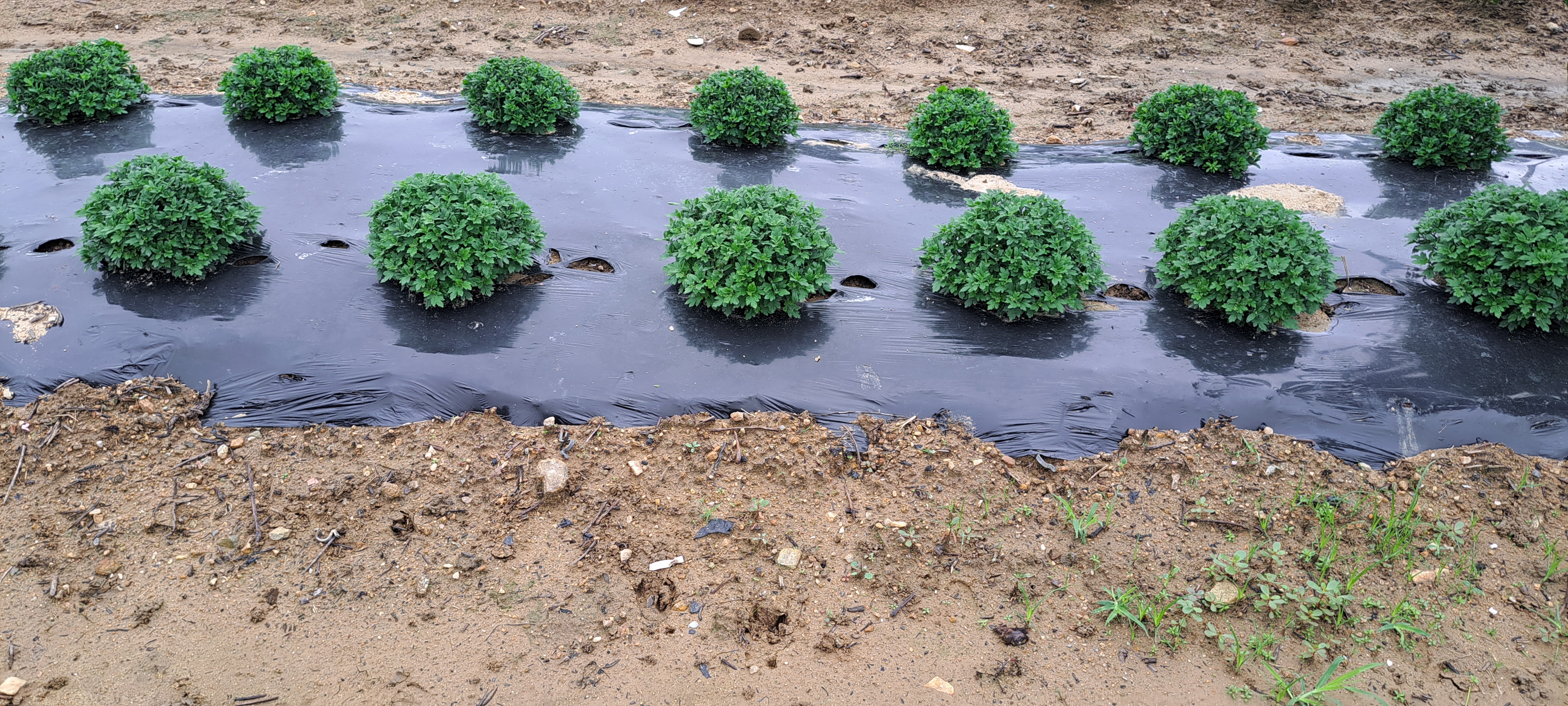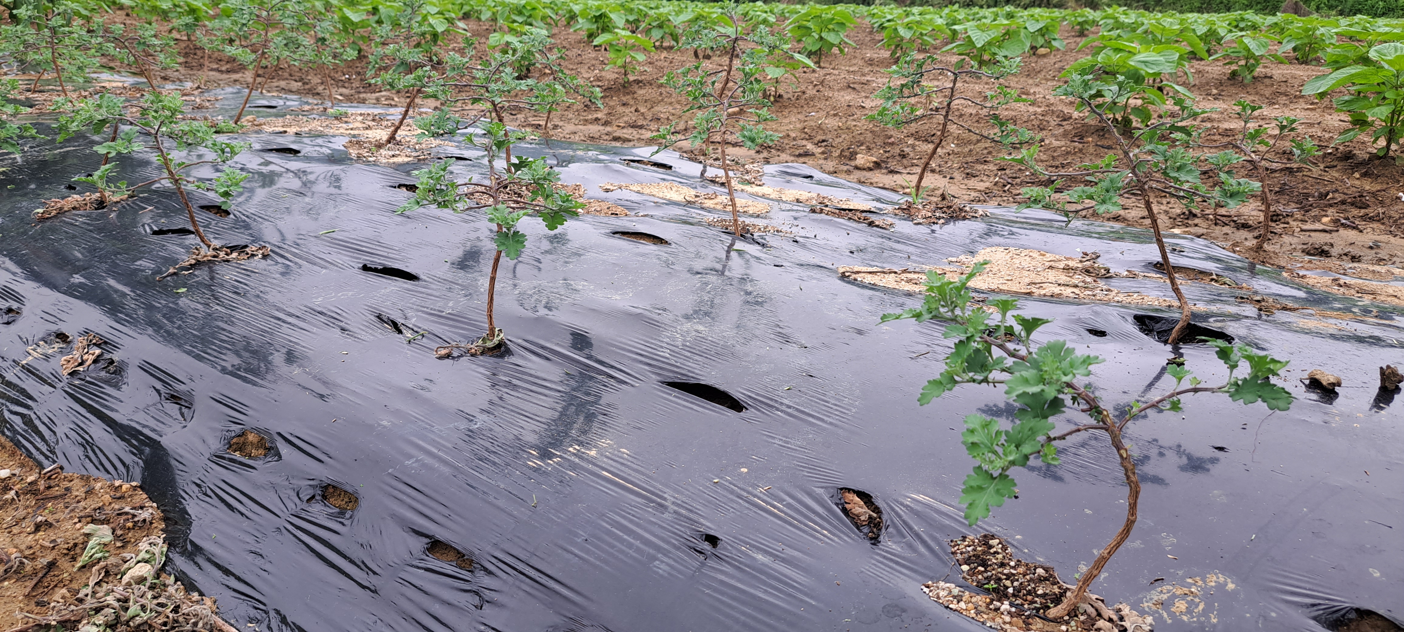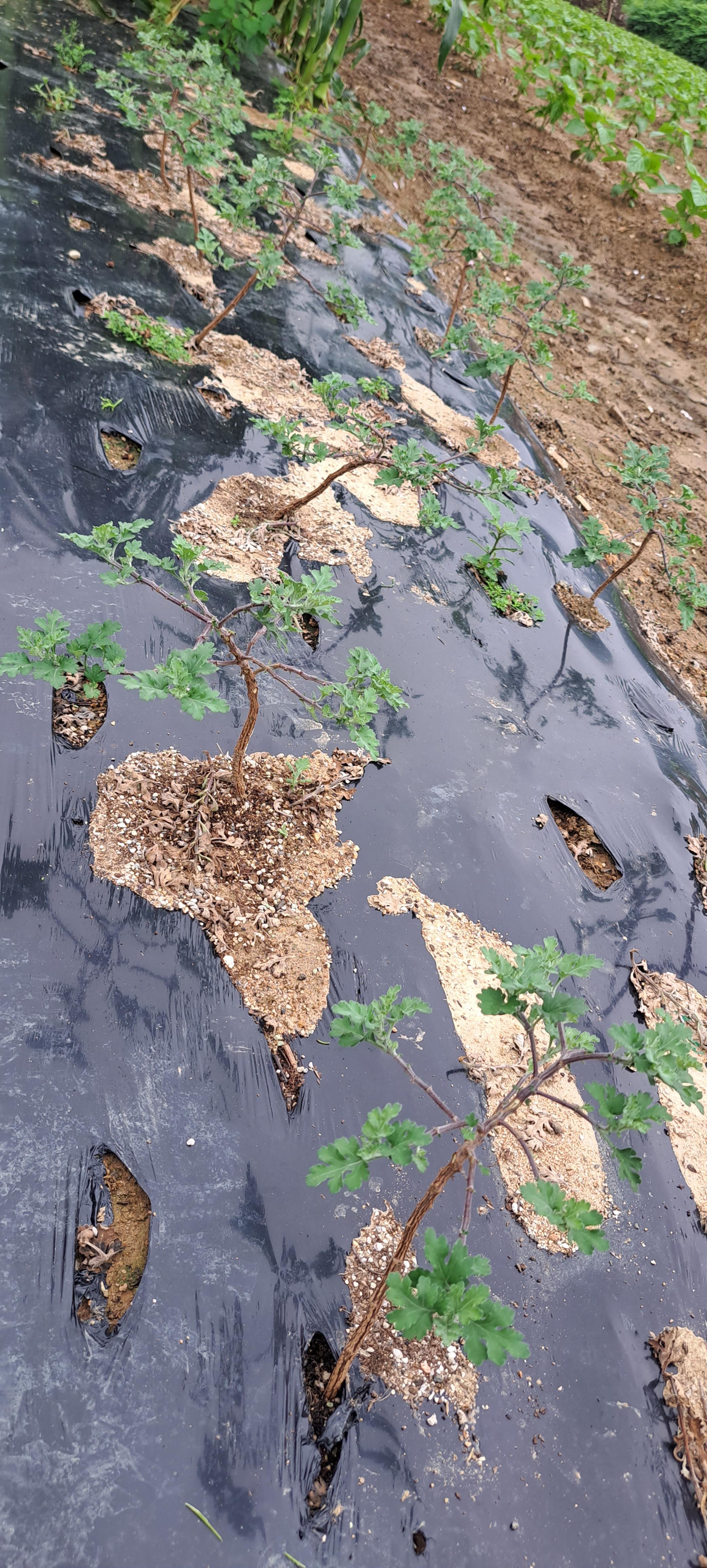 들깨밭 옆에서 자라는 분재국화.가든멈국화 잘 크고 있네요