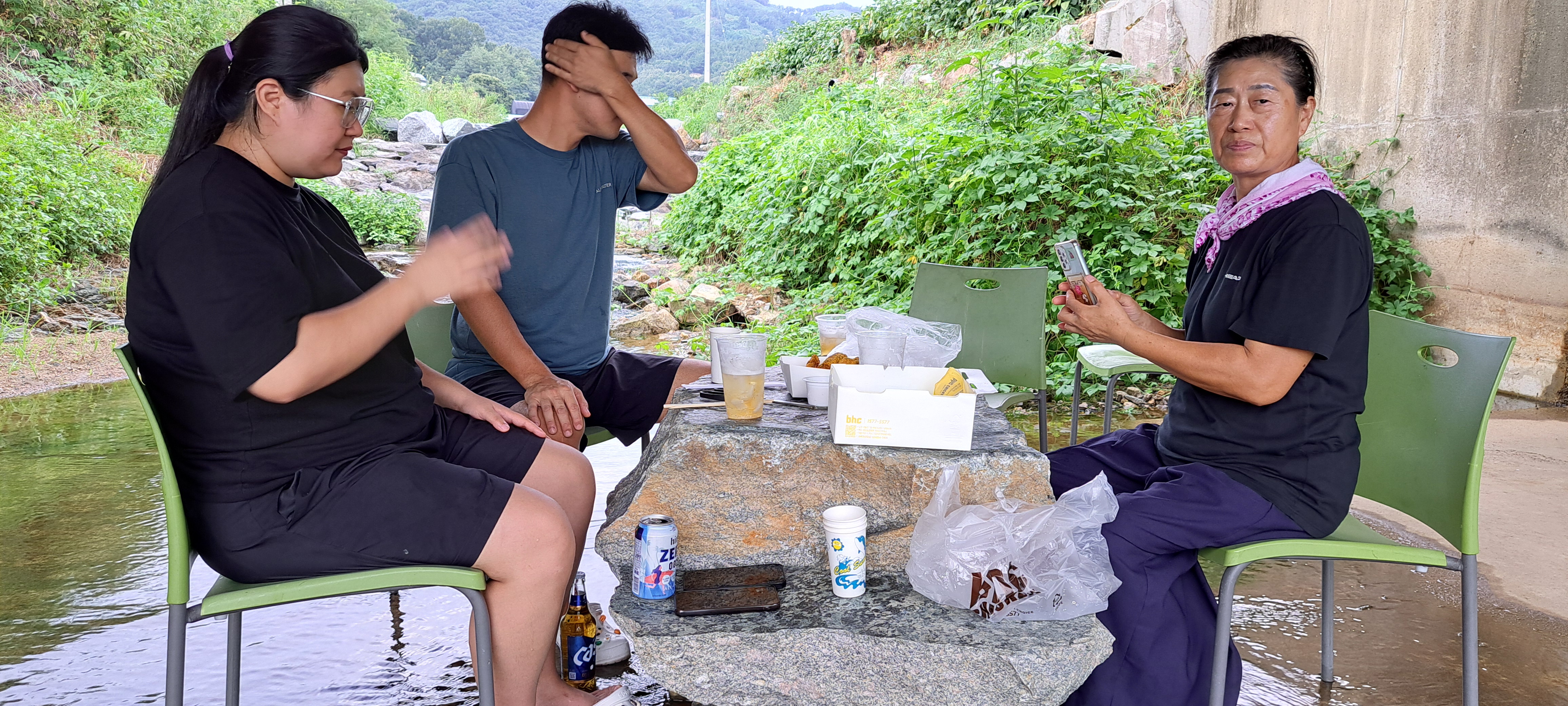 다리밑에 개울가에서 시원하게