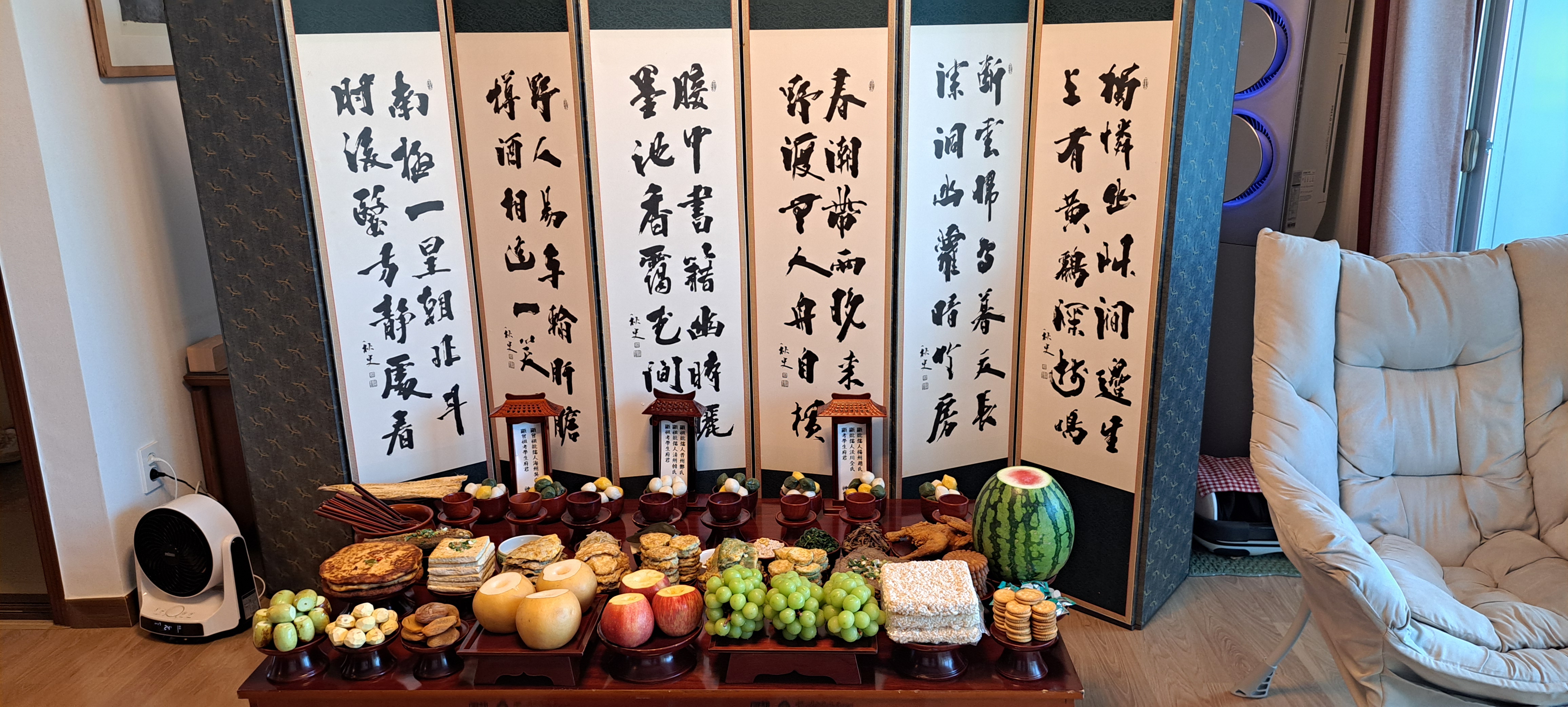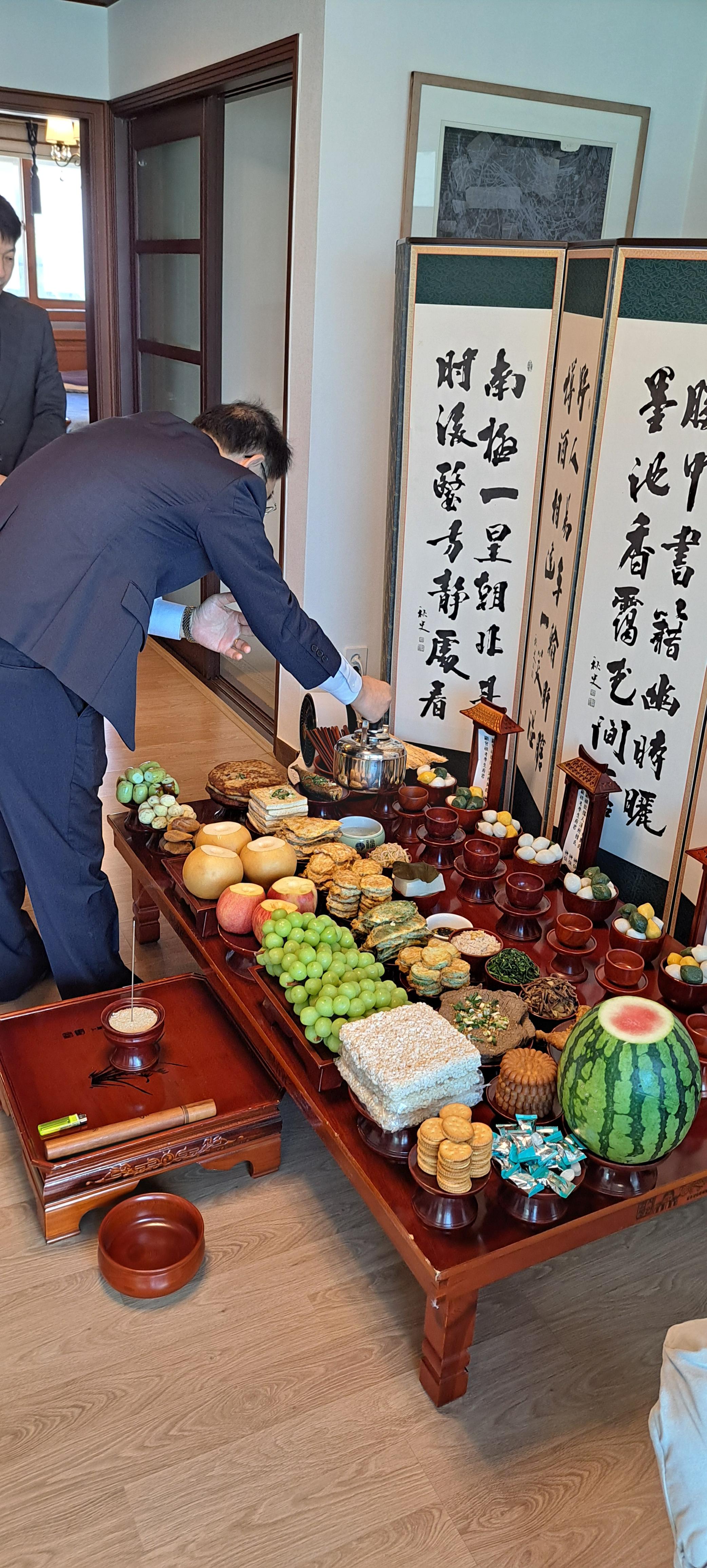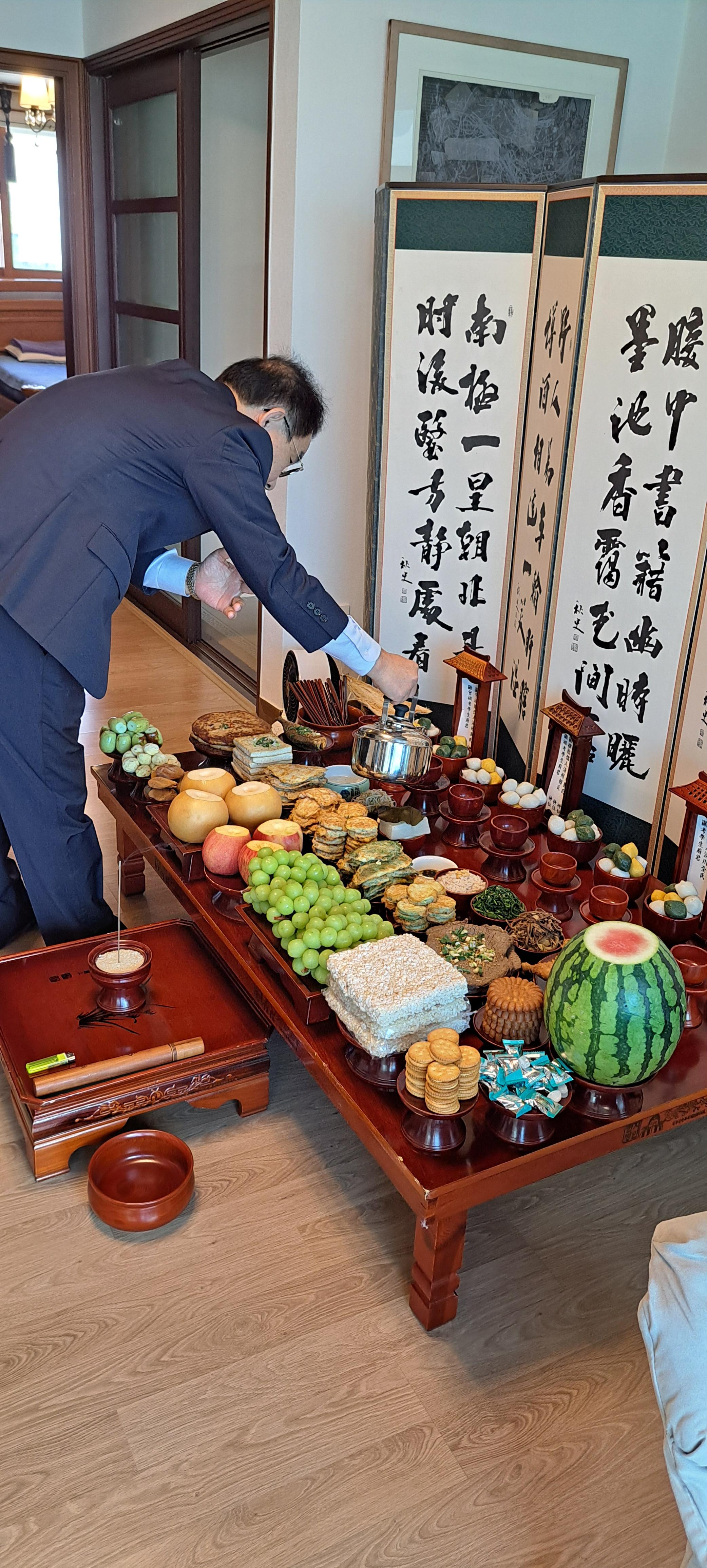 여 준비한 음식으로 차례 지냅니다