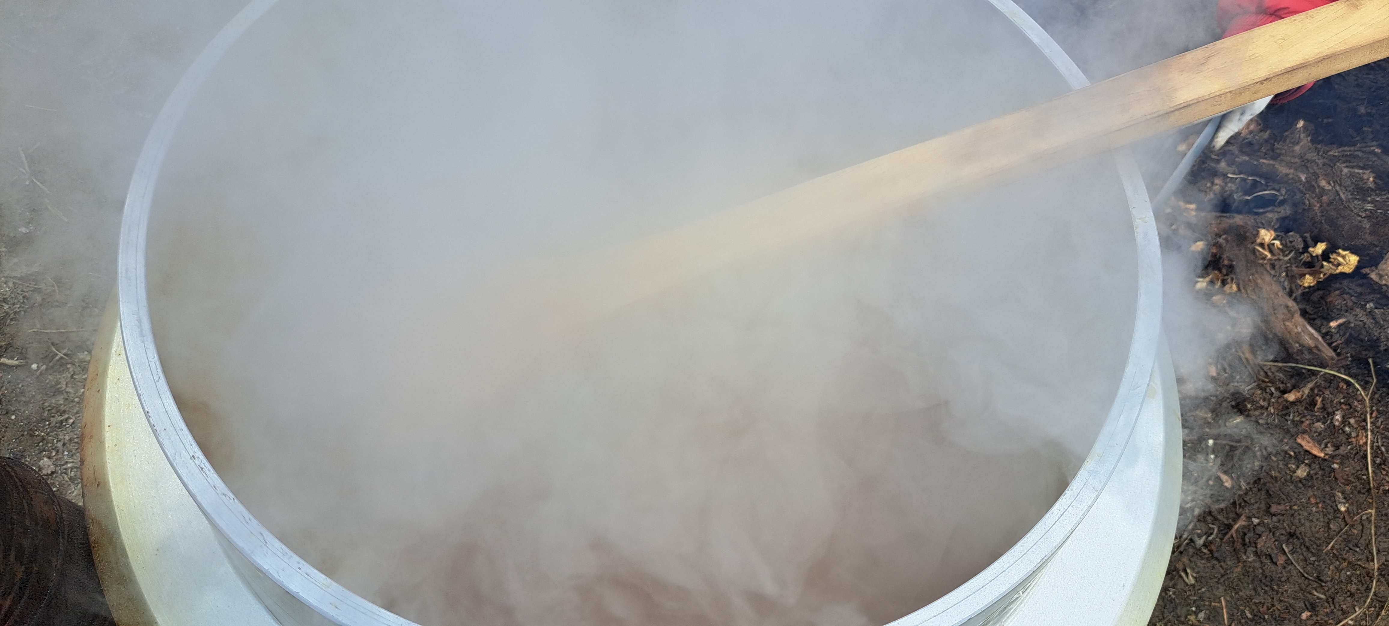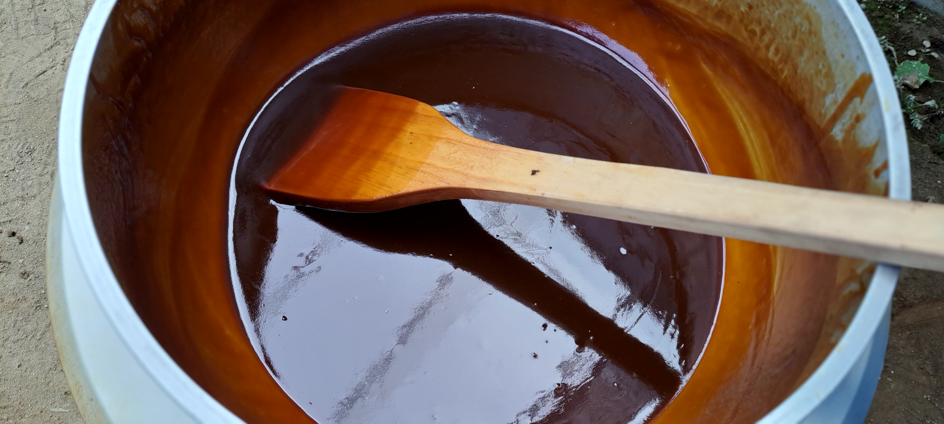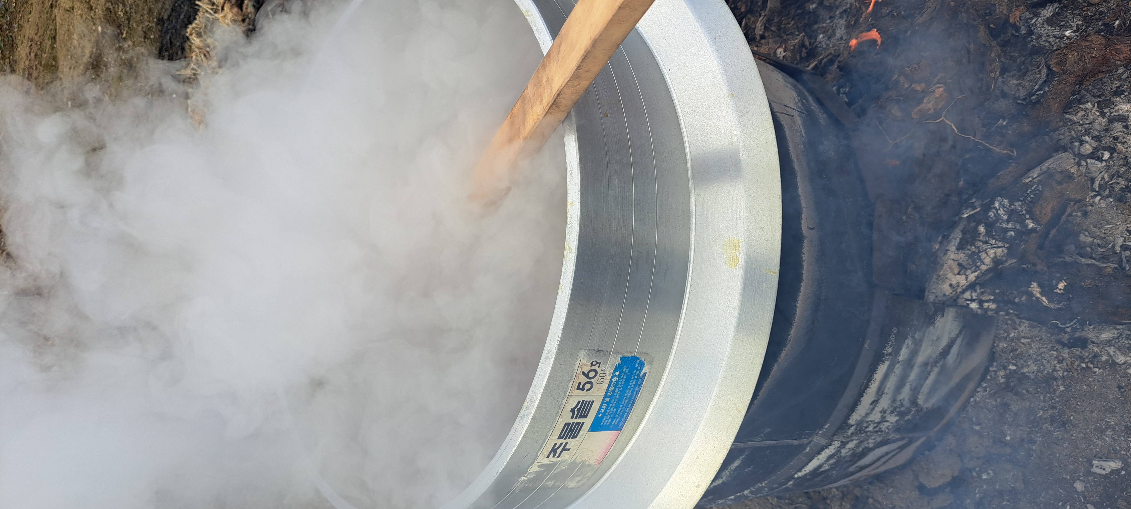 삶는중 엿질금도 물에 담겨