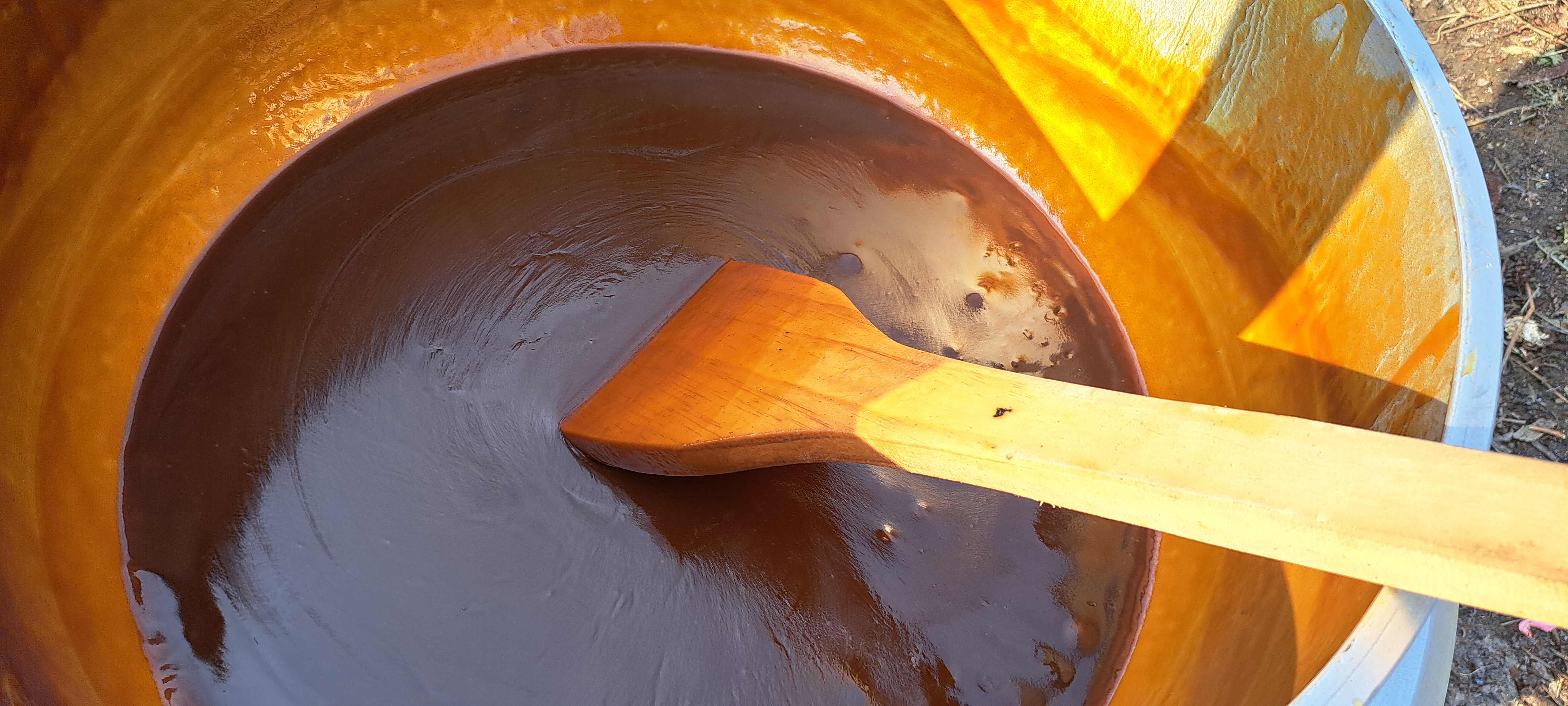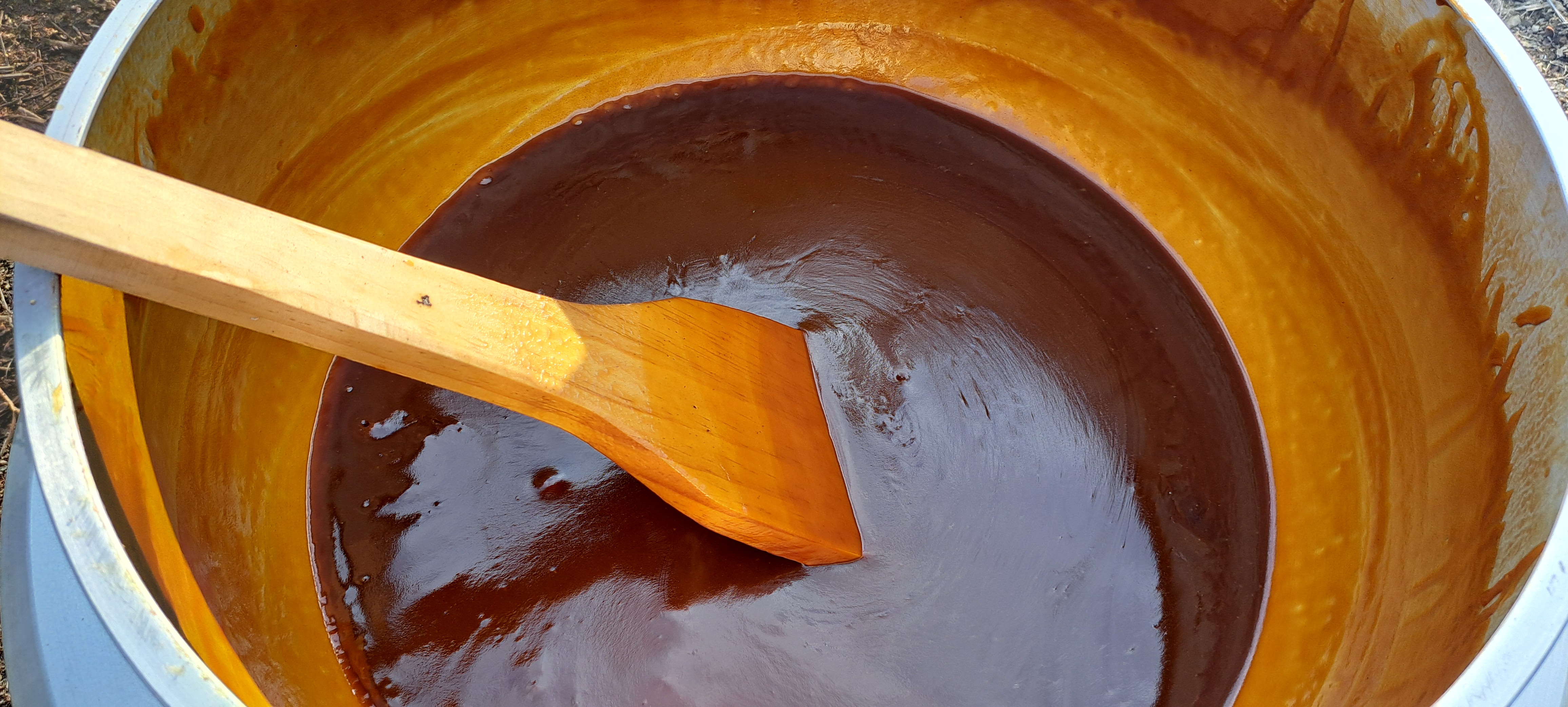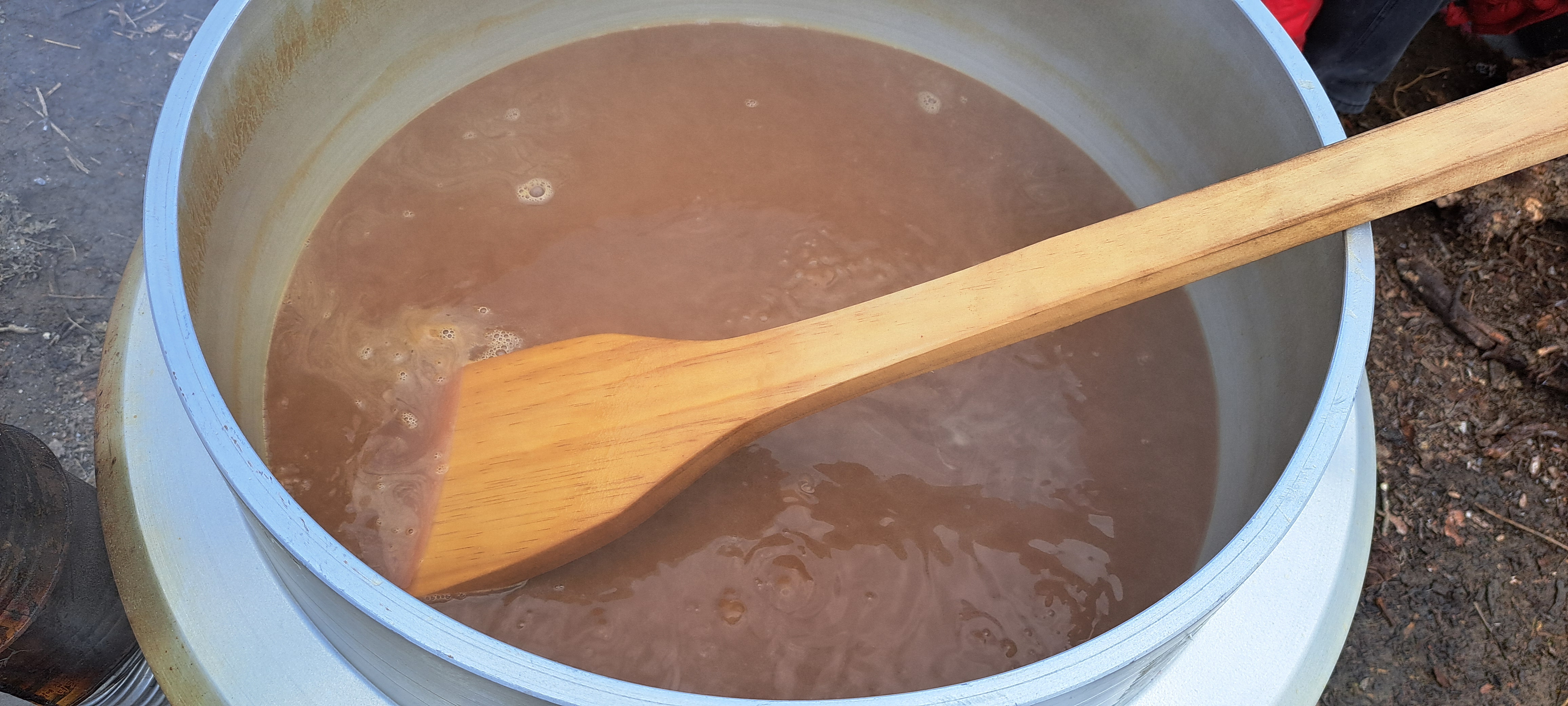 삶는중 엿질금도 물에 담겨